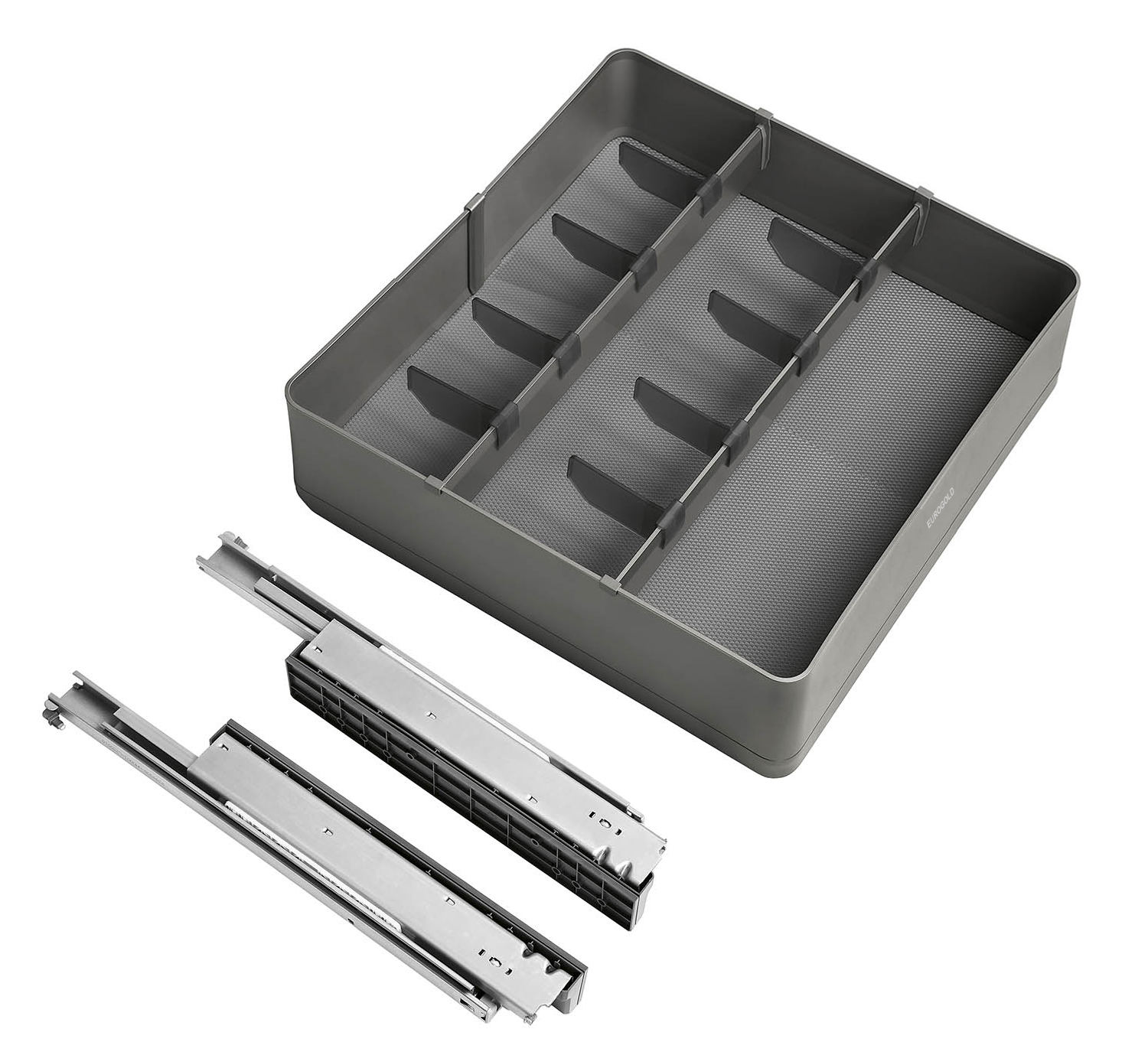 Ngăn kéo độc lập thành cao kết hợp khay chia hợp kim nhôm màu ghi đậm 600mm EKM25260 | EKL25260 là phụ kiện tủ bếp được nhập khẩu chính hãng từ thương hiệu nổi tiếng Eurogold. Được sản xuất 100% theo công nghệ hiện đại, tân tiến nhất, chất lượng của sản phẩm được đánh giá đạt chuẩn theo khung yêu cầu khắt khe nhất của Châu Âu.