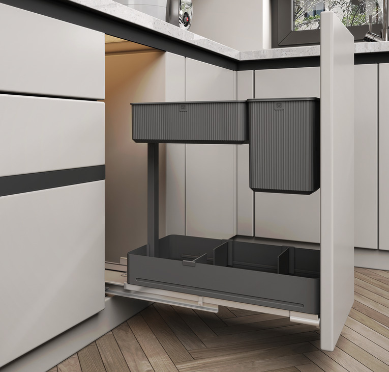 Với bộ gá này bạn có thể lắp đặt thêm cánh kéo với mọi chất liệu (gỗ, nhôm,...) theo đúng sở thích của bạn. Chỉ trong tích tắc thì rổ đa năng gia vị 2 tầng thép màu than chì 300mm Utensio Plus H2 Hafele 545.14.301 của bạn có thể hô biến thành một ngăn kéo thật linh hoạt, gọn gàng, đẹp mắt và vô cùng đồng bộ, sang trọng.