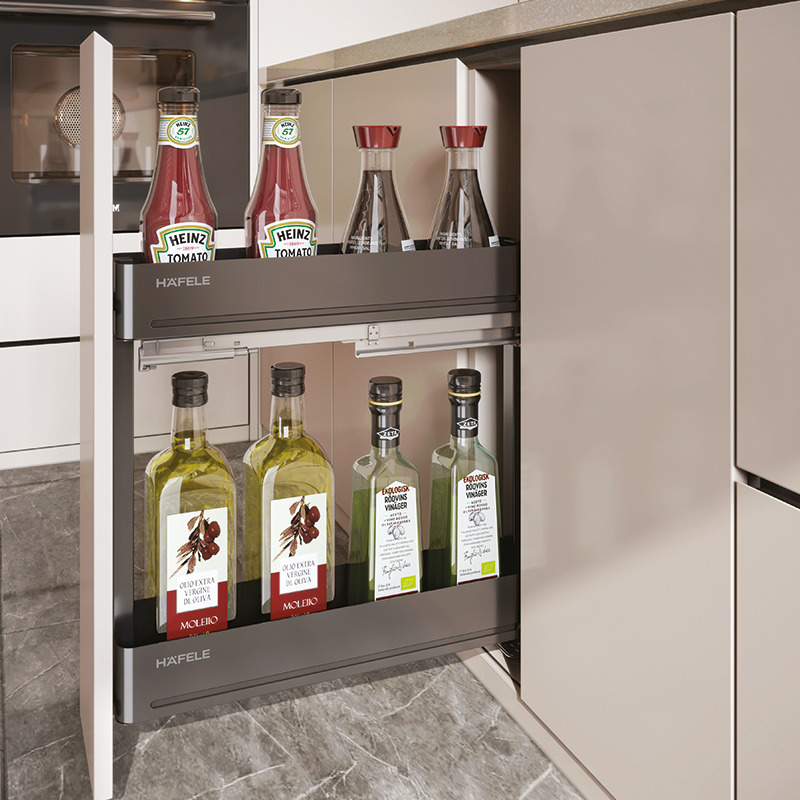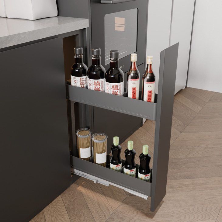 Với bộ gá này bạn có thể lắp đặt thêm cánh kéo với mọi chất liệu (gỗ, nhôm,...) theo đúng sở thích của bạn. Chỉ trong tích tắc thì rổ gia vị 2 tầng thép màu than chì 150mm Utensio Plus H2 Hafele 545.14.321 của bạn có thể hô biến thành một ngăn kéo thật linh hoạt, gọn gàng, đẹp mắt và vô cùng đồng bộ, sang trọng.