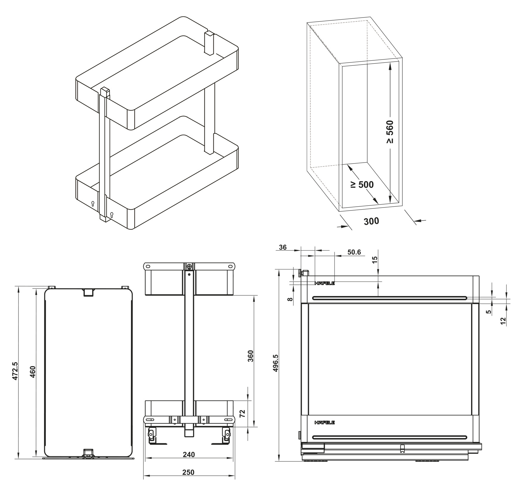 Với bộ gá này bạn có thể lắp đặt thêm cánh kéo với mọi chất liệu (gỗ, nhôm,...) theo đúng sở thích của bạn. Chỉ trong tích tắc thì rổ gia vị 2 tầng thép màu than chì 300mm Utensio Plus H2 Hafele 545.14.323 của bạn có thể hô biến thành một ngăn kéo thật linh hoạt, gọn gàng, đẹp mắt và vô cùng đồng bộ, sang trọng.