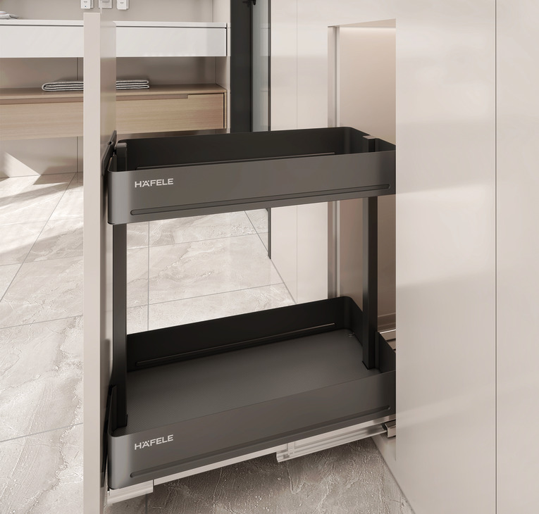Với bộ gá này bạn có thể lắp đặt thêm cánh kéo với mọi chất liệu (gỗ, nhôm,...) theo đúng sở thích của bạn. Chỉ trong tích tắc thì rổ gia vị 2 tầng thép màu than chì 400mm Utensio Plus H2 Hafele 545.14.324 của bạn có thể hô biến thành một ngăn kéo thật linh hoạt, gọn gàng, đẹp mắt và vô cùng đồng bộ, sang trọng.