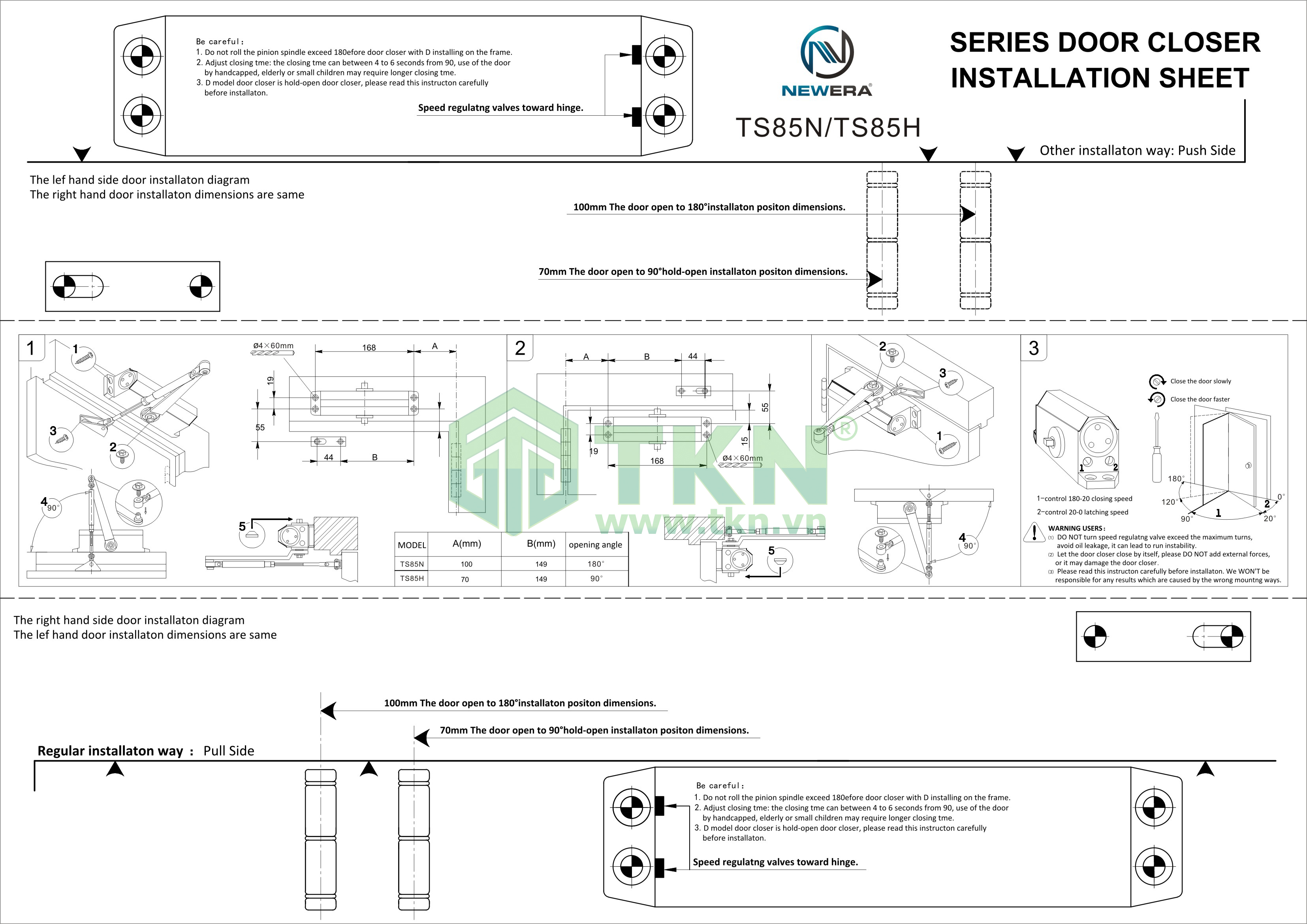 Tay co thủy lực lắp nổi 60-85kg không có chức năng giữ cửa Newera TS85N
