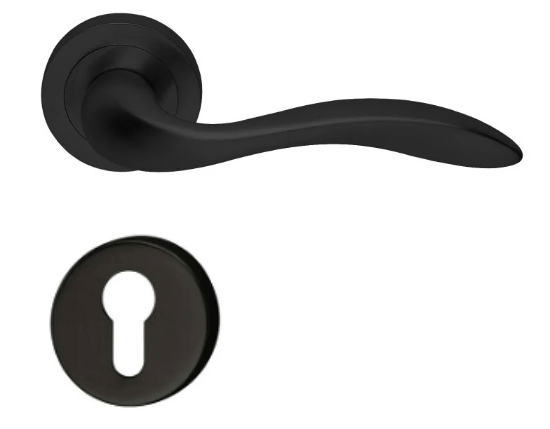 Tay nắm gạt cửa phòng có nắp che đồng thau màu đen mờ Hafele 901.79.710