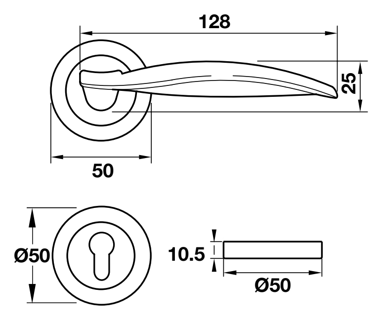 Trọn bộ gồm: 2 tay nắm gạt, 1 bộ nắp chụp tay nắm, 1 bộ nắp chụp ruột khóa PC, 1 bộ vít.
