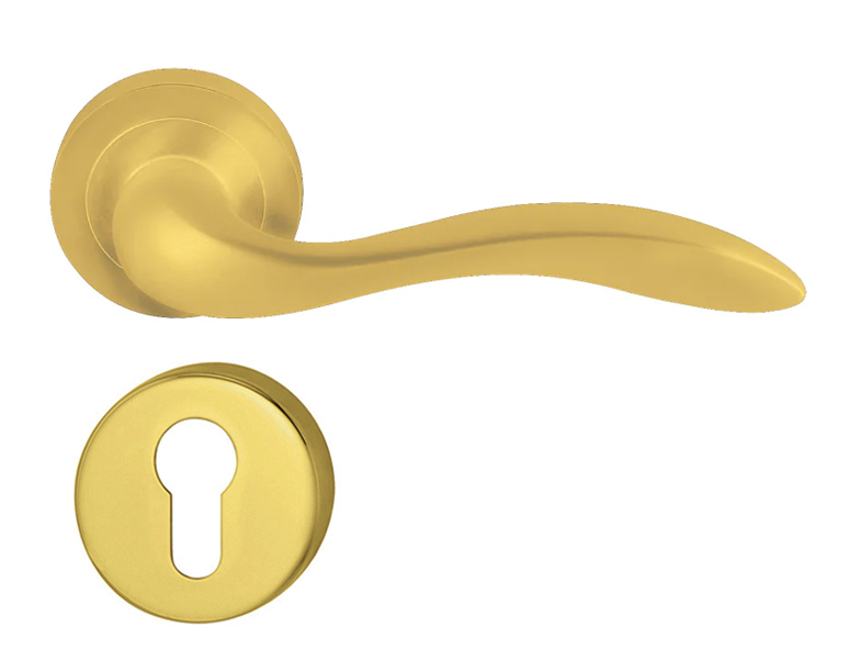 Trọn bộ gồm: 2 tay nắm gạt, 1 bộ nắp chụp tay nắm, 1 bộ nắp chụp ruột khóa PC, 1 bộ vít.