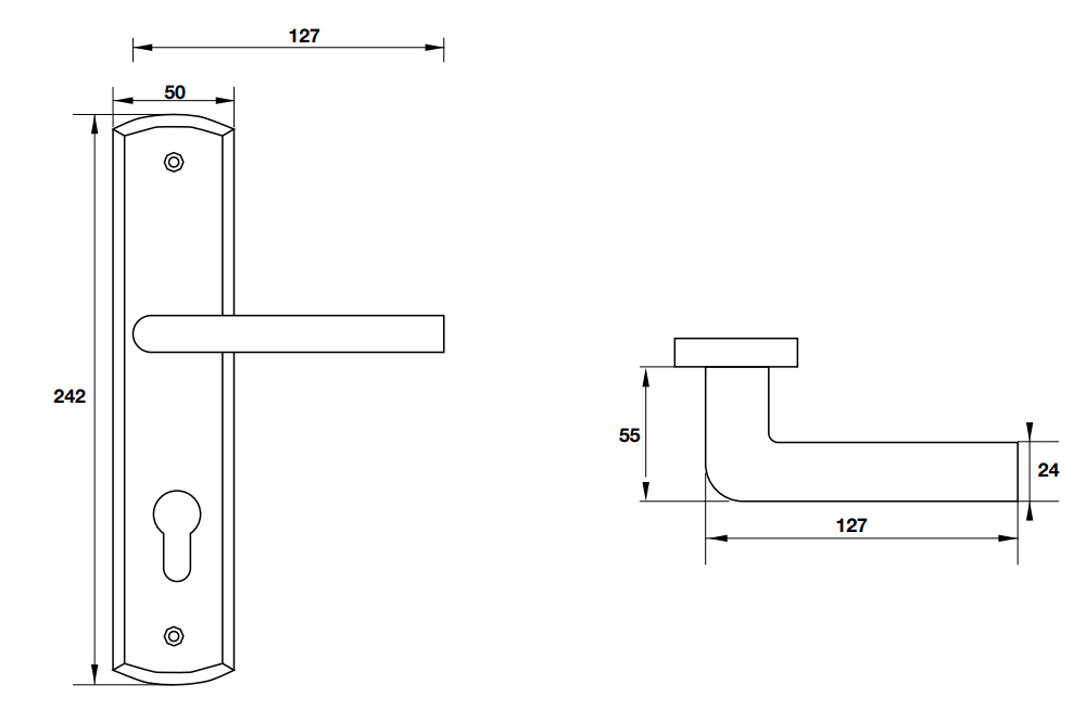 - Trọn bộ gồm: 2 tay nắm gạt đế dài, 1 bộ vít