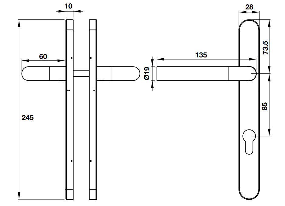 - Khoảng cách từ tâm lỗ trục tay nắm đến tâm lỗ ruột khoá: 85mm