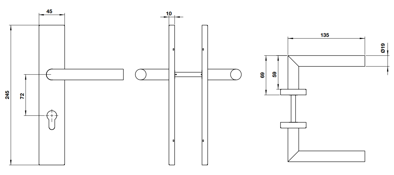 - Khoảng cách từ tâm lỗ trục tay nắm đến tâm lỗ ruột khoá: 72mm