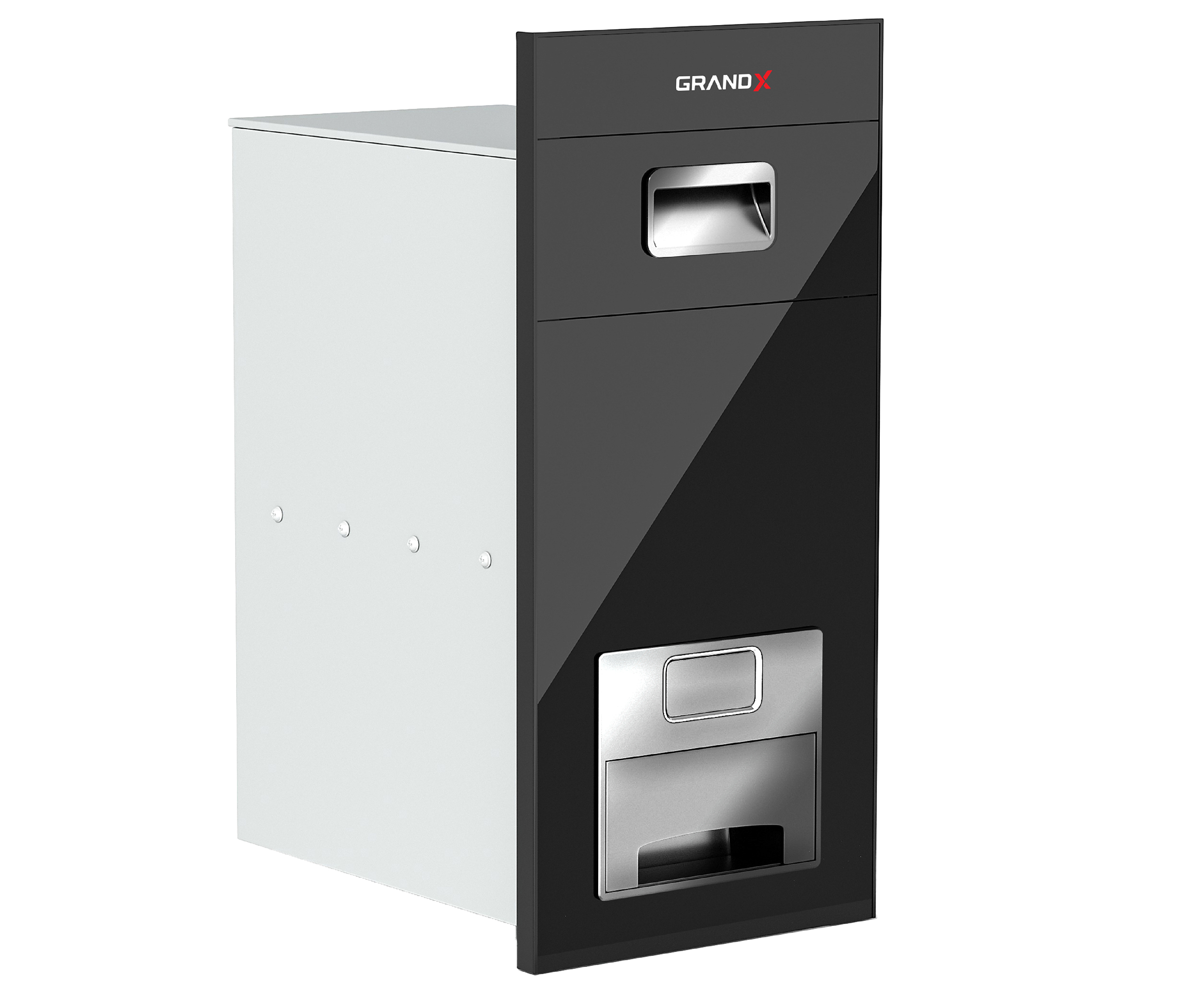 Thùng gạo Inox mặt kính đen 20kg nút nhấn thẳng 300mm GrandX XR.G302B được thiết kế với mặt thùng thay thế cho cánh tủ, giúp tiết kiệm không gian và tạo sự gọn gàng cho căn bếp. Mặt thùng được bắt cố định, đảm bảo sự ổn định và an toàn khi sử dụng.