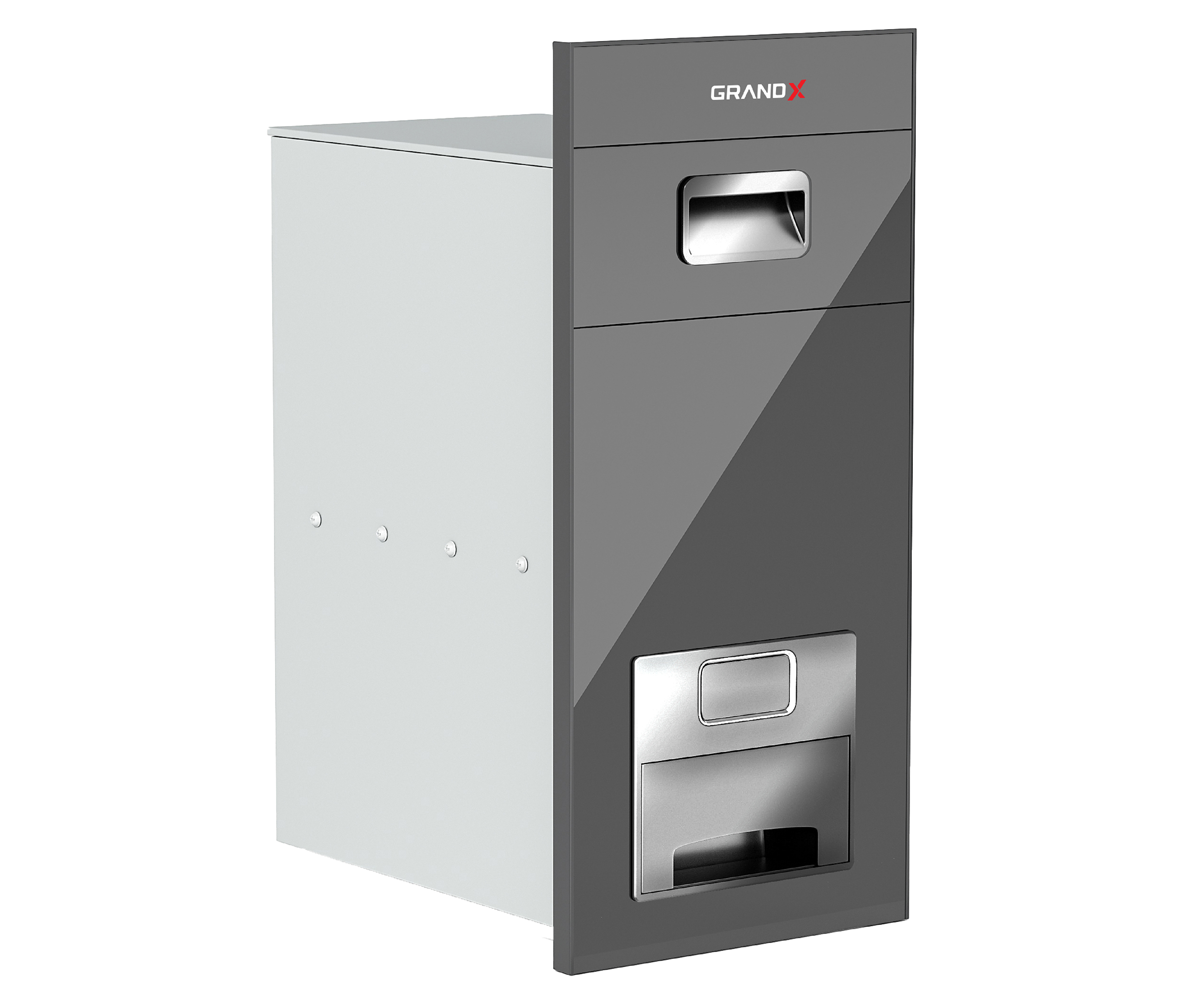 Thùng gạo Inox mặt kính xám 20kg nút nhấn thẳng 300mm GrandX XR.G302G được thiết kế với mặt thùng thay thế cho cánh tủ, giúp tiết kiệm không gian và tạo sự gọn gàng cho căn bếp. Mặt thùng được bắt cố định, đảm bảo sự ổn định và an toàn khi sử dụng.