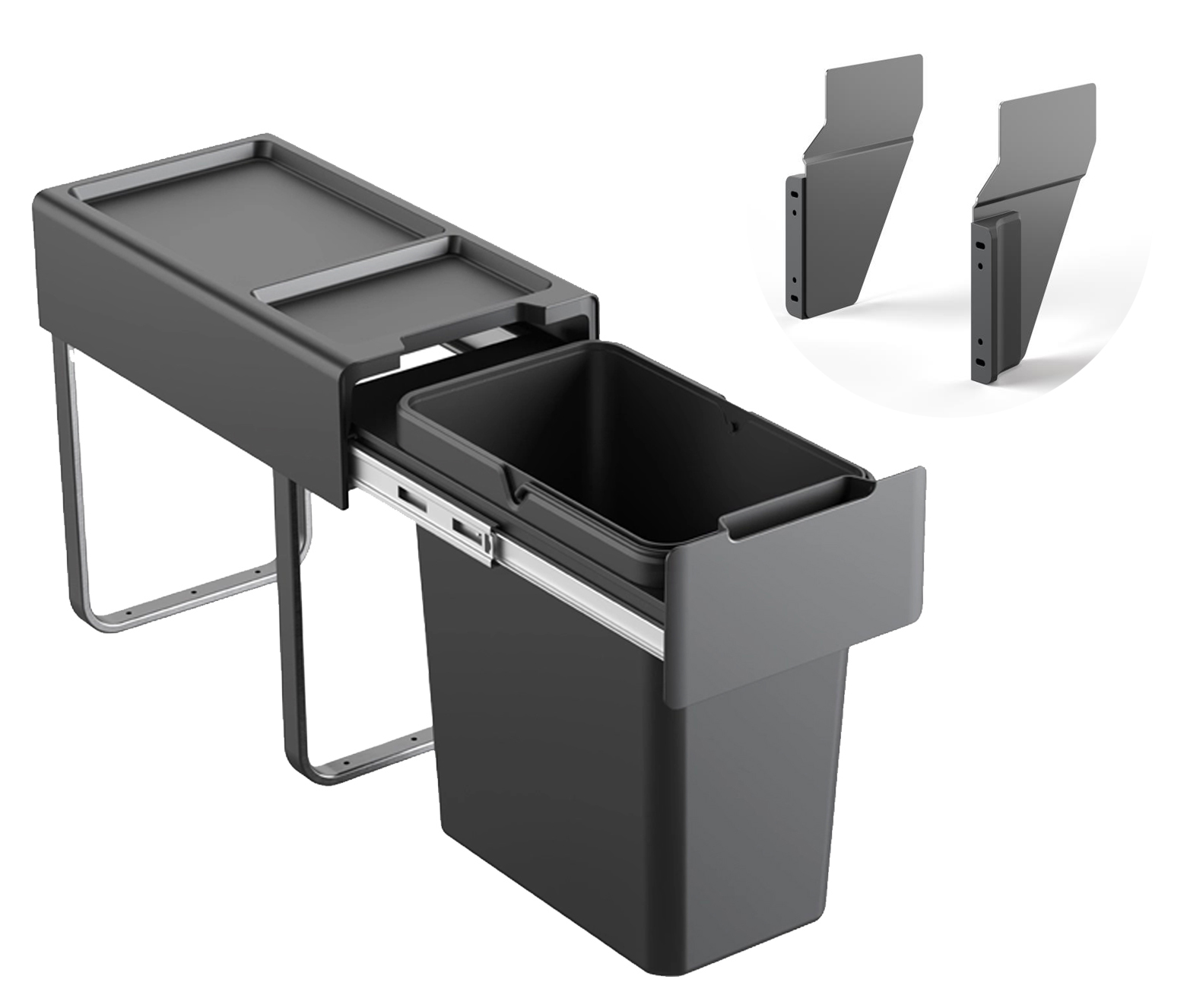 Với bộ gá này bạn có thể lắp đặt thêm cánh kéo với mọi chất liệu (gỗ, nhôm,...) theo đúng sở thích của bạn. Chỉ trong tích tắc thì thùng rác âm tủ 1 ngăn 25L cánh kéo/mở màu xám 300mm Eurogold BR300 | EBR300 của bạn có thể hô biến thành một ngăn kéo thật linh hoạt, gọn gàng, đẹp mắt và vô cùng đồng bộ, sang trọng.