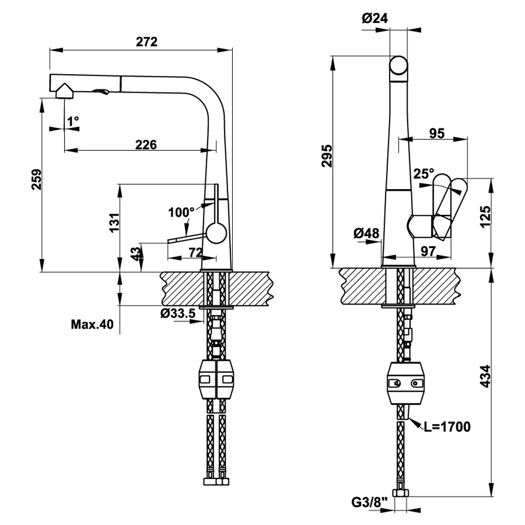 - Chiều cao từ mặt chậu đến đầu vòi (mm): 259