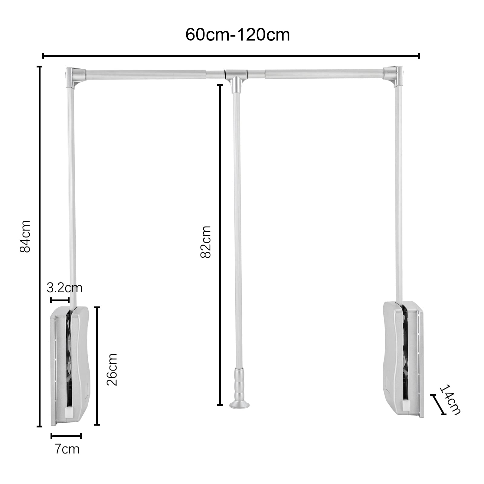 Giá treo quần áo di động giảm chấn tải trọng 12kg rộng 600-1150mm Newera NE3569.383