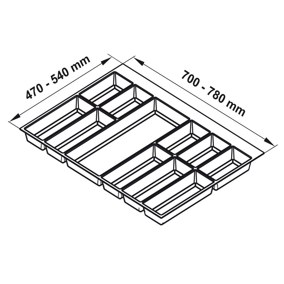 Khay chia đa năng đựng dao kéo thìa nĩa nhựa màu xám nhám 800mm Classico Hafele 556.52.248