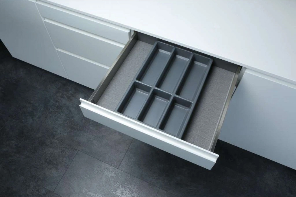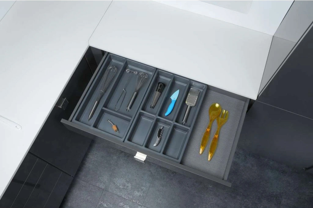 Khay chia đa năng đựng dao kéo thìa nĩa nhựa màu xám nhám 900mm Classico Hafele 556.52.249