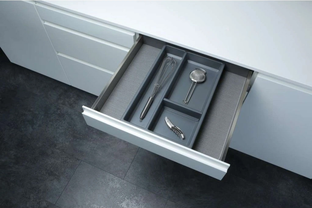 Khay chia đa năng đựng dao kéo thìa nĩa nhựa màu xám 300mm Separado Hafele 556.70.140