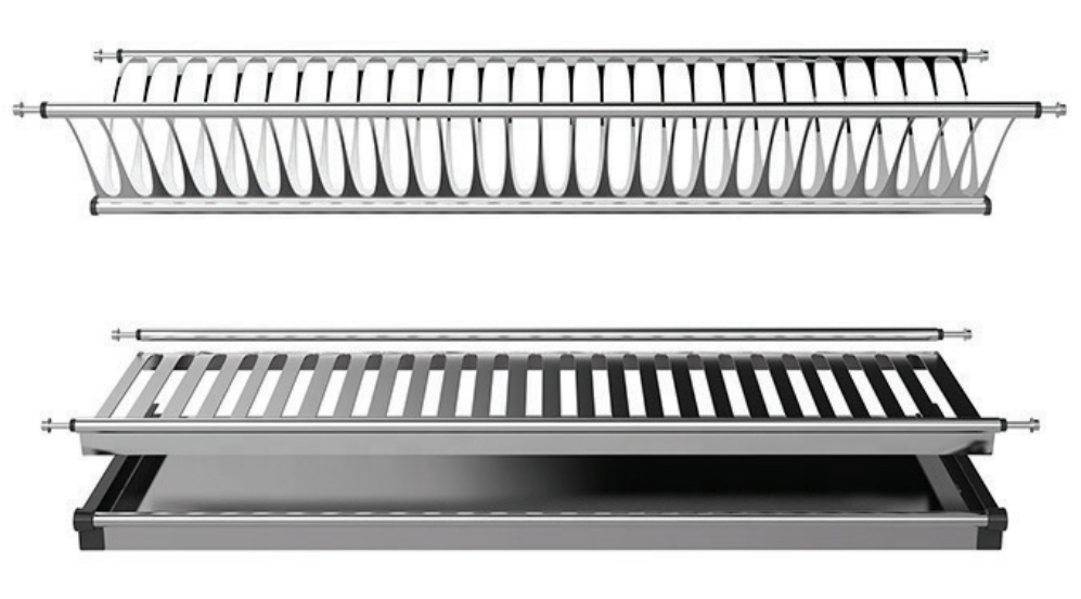 Giá bát đĩa cố định 2 tầng chữ V khay hứng nước bằng inox 900mm Goldmax CV900M