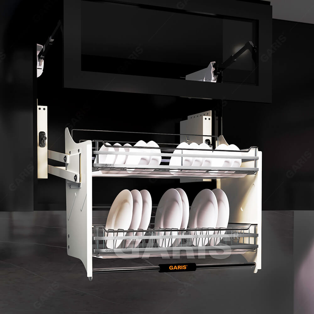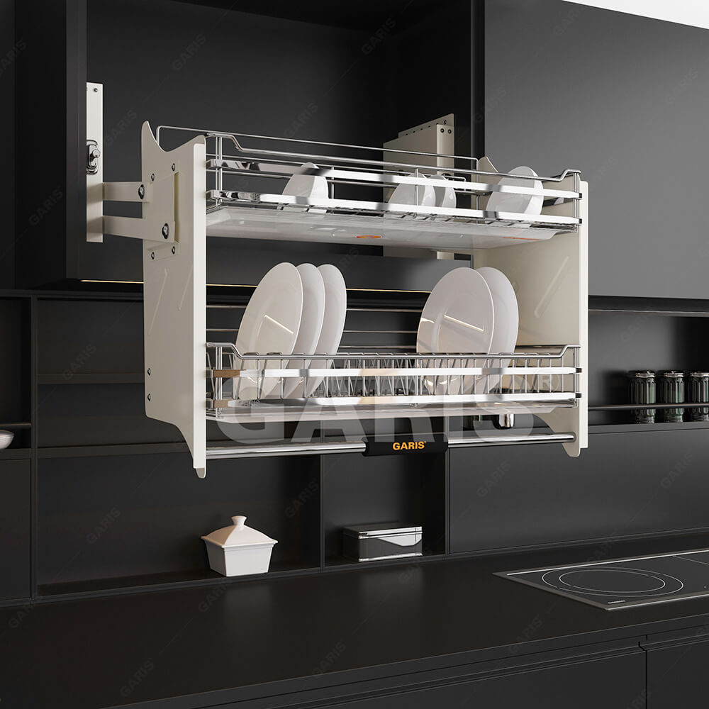 Giá bát đĩa nâng hạ Inox 304 nan dẹt xước mờ 800mm Garis GL06.80E