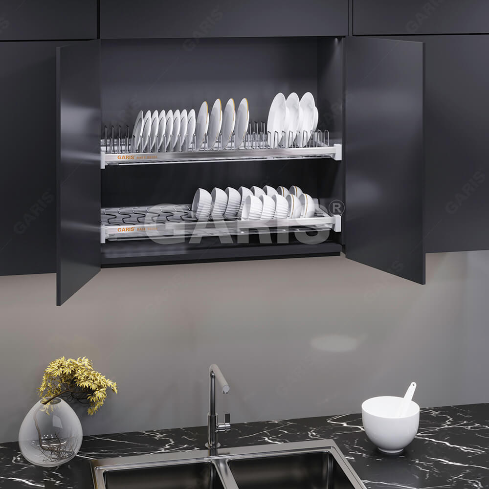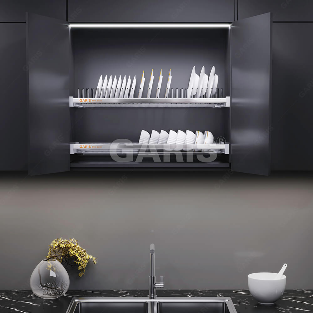 Giá bát đĩa cố định 2 tầng Inox 304 nan tròn mạ Chrome 900mm Garis GB04.90C