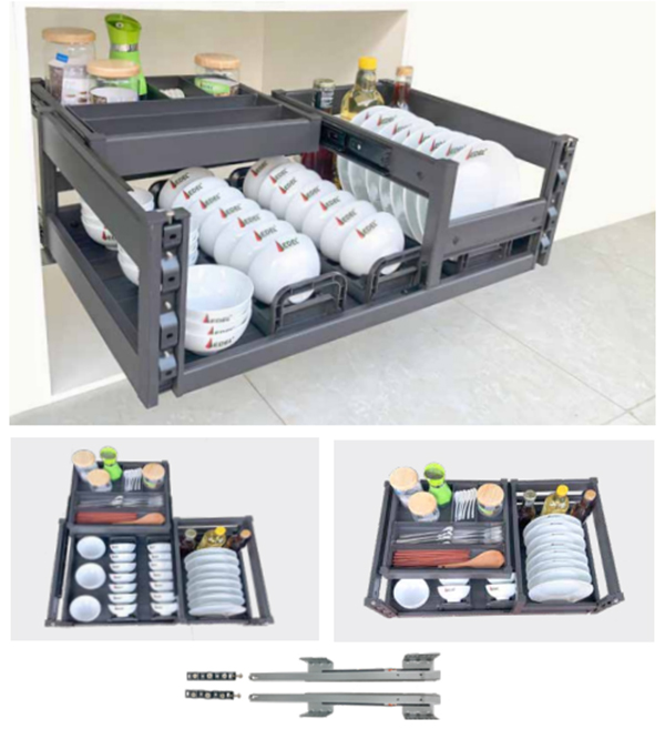 Giá bát đĩa cánh kéo hợp kim nhôm phủ nano 700mm Edel EDV01.700