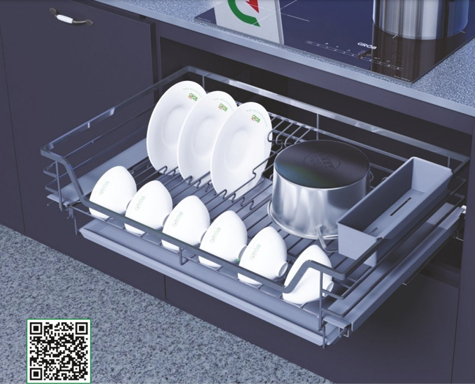 Giá bát đĩa hợp kim phủ nano ghi xám nan dẹt 600mm Grob GP-60