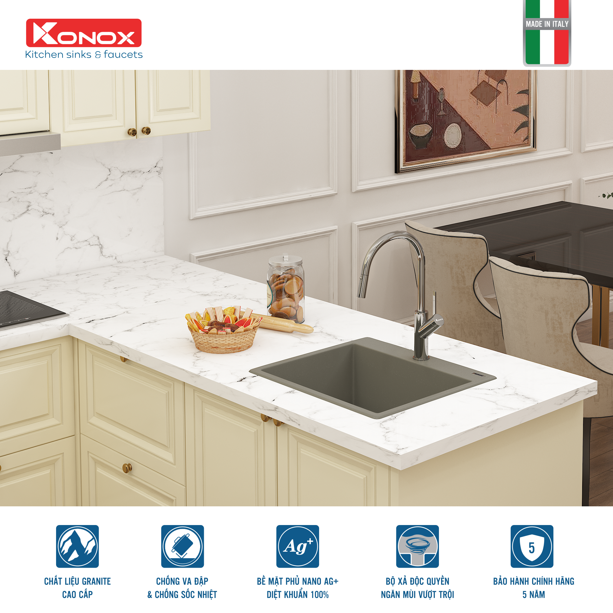 Chậu rửa Konox Ruvita 680 White Silver