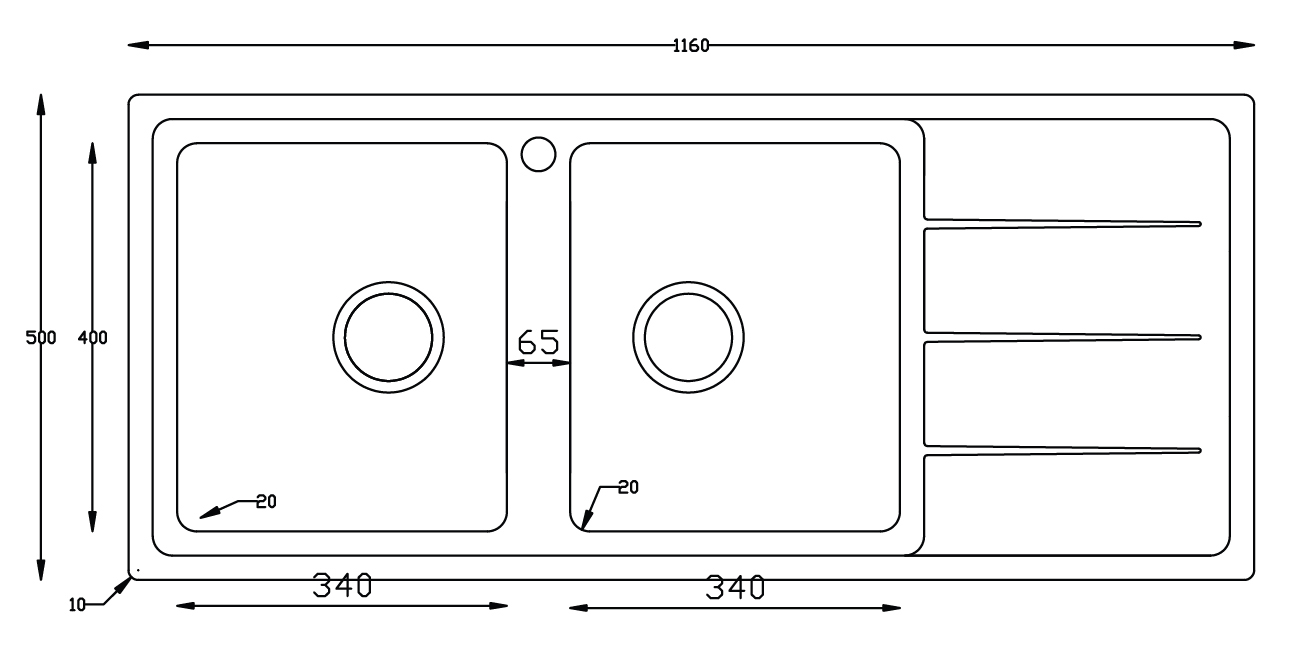 Chậu rửa Konox Turkey Sink Beta 1160 - Bàn Phải