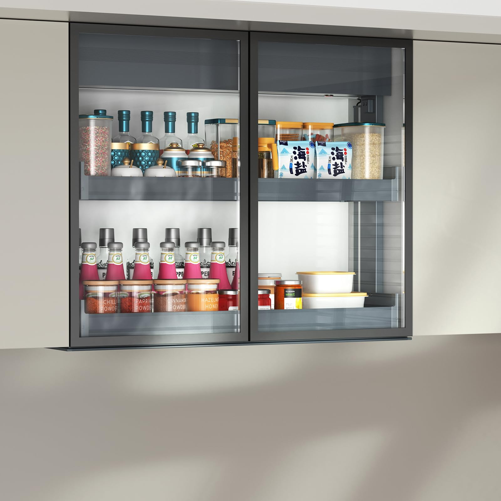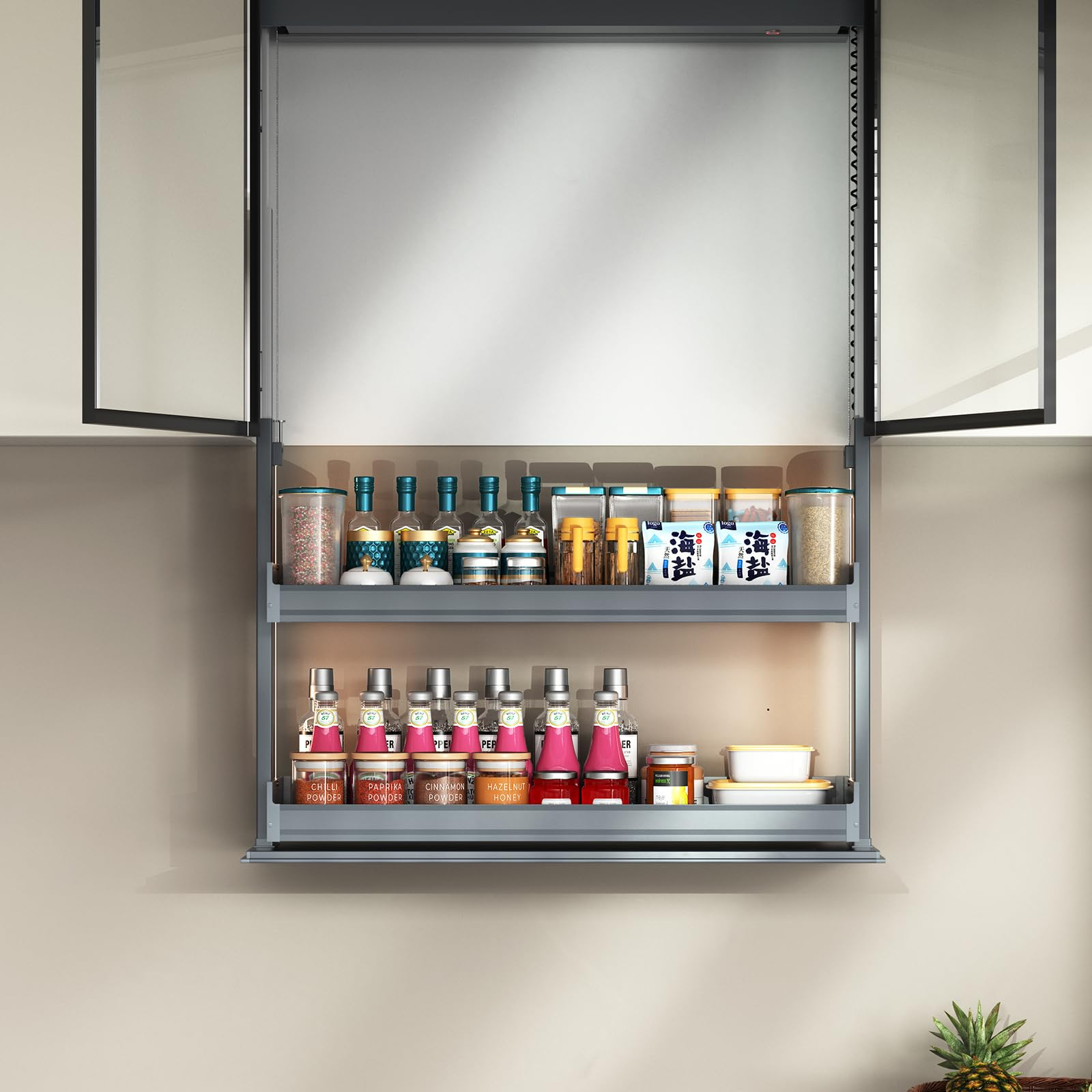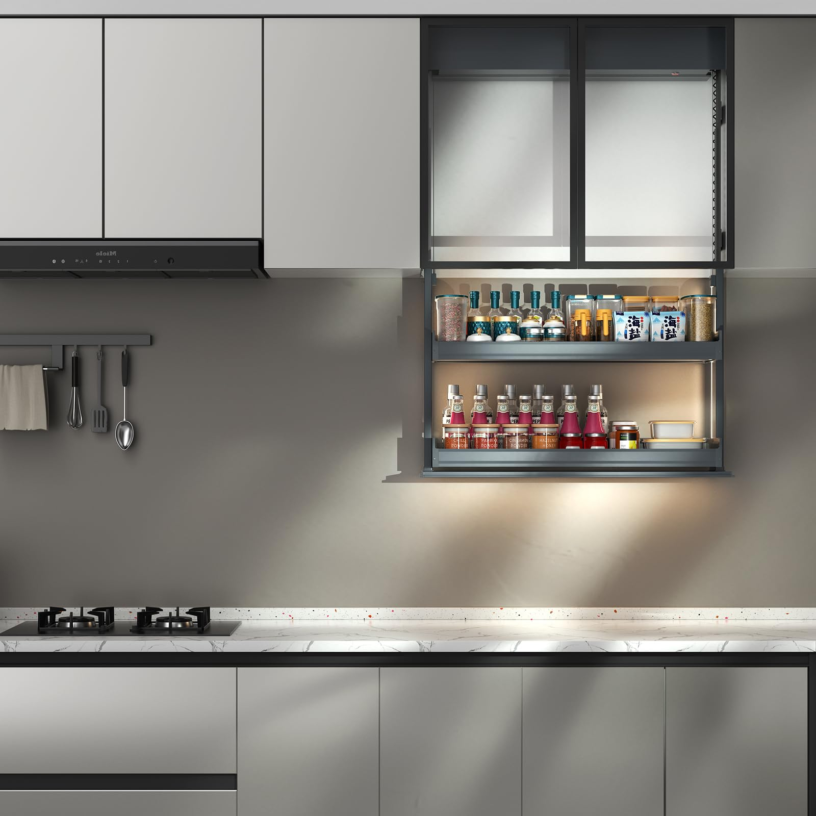 Giá gia vị nâng hạ điện tự động cảm ứng hợp kim nhôm màu ghi đậm 800mm Eurogold EMS3080 | ESV8980 | ESV8980Pro
