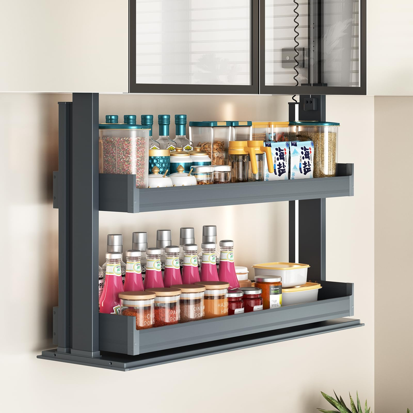 Giá gia vị nâng hạ điện tự động cảm ứng hợp kim nhôm màu ghi đậm 700mm Eurogold EMS3070 | ESV8970 | ESV8970Pro
