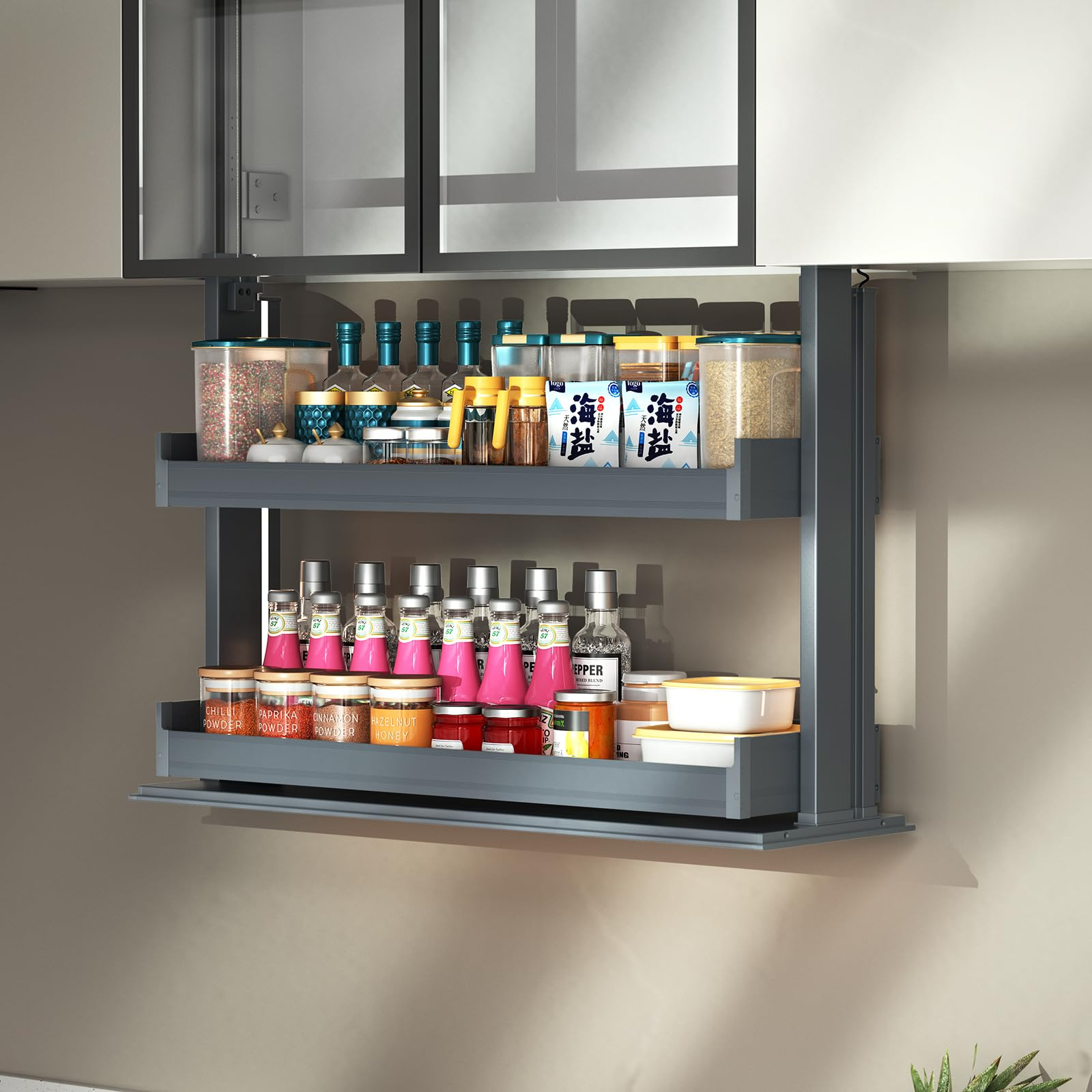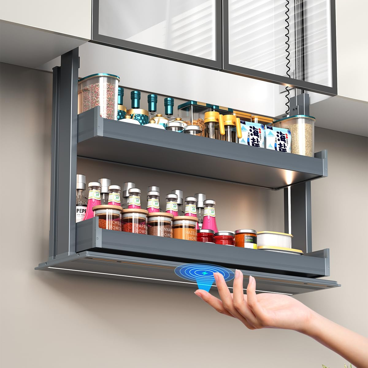 Giá gia vị nâng hạ điện tự động cảm ứng hợp kim nhôm màu ghi đậm 600mm Eurogold EMS3060 | ESV8960 | ESV8960Pro
