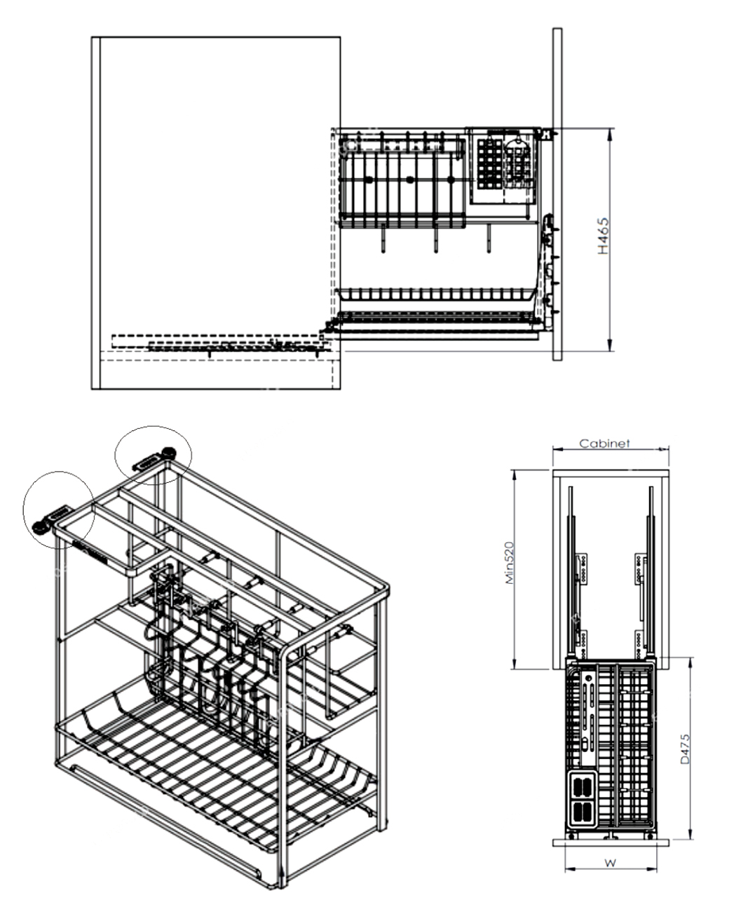 Giá gia vị lắp đáy tủ trên 800mm Eurogold EV2180