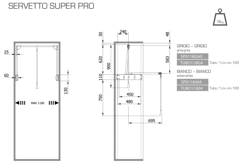 Thanh treo áo di động Servetto TUBO11804 PRO