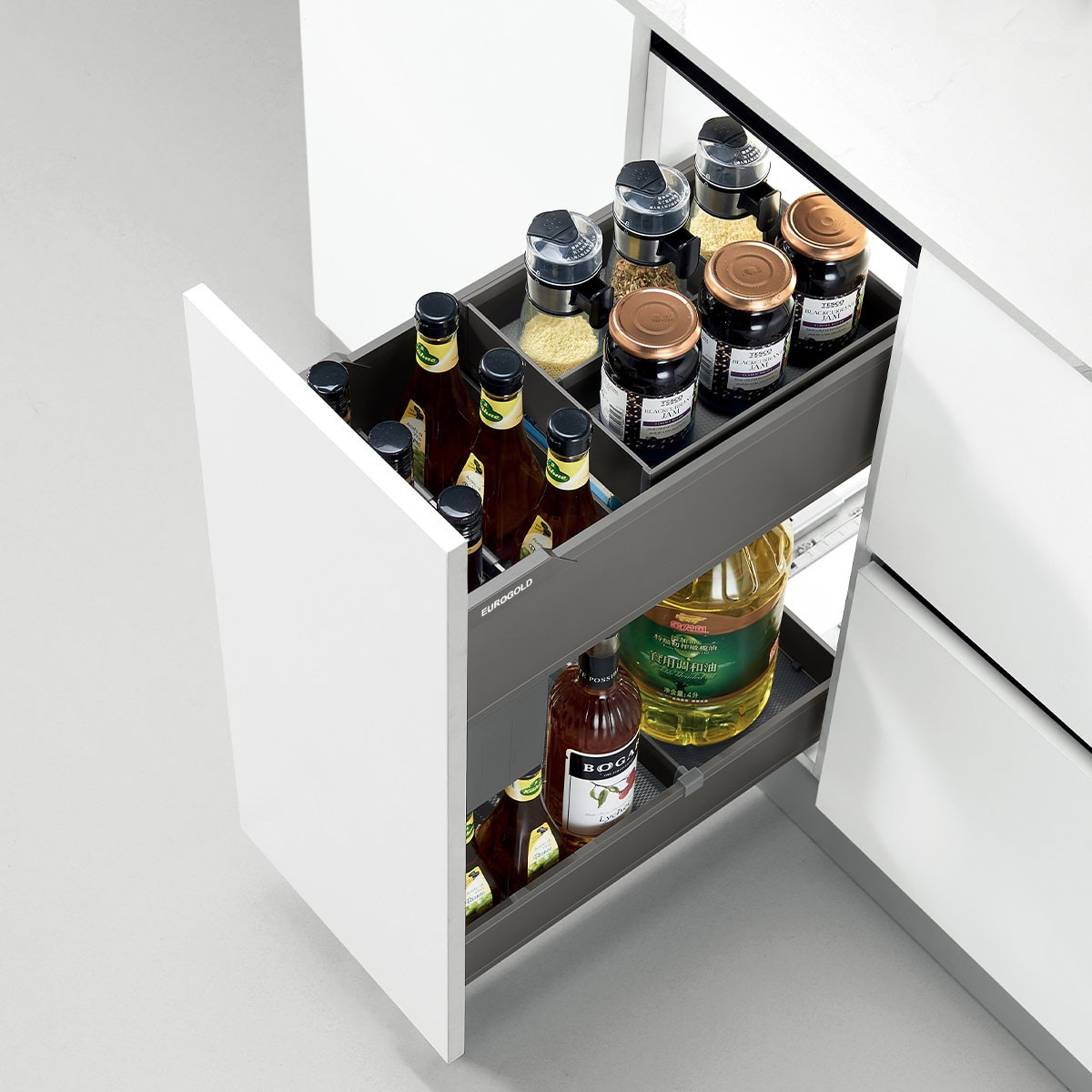 Giá gia vị đa năng hợp kim nhôm màu ghi đậm 400mm Eurogold EUM2140G
