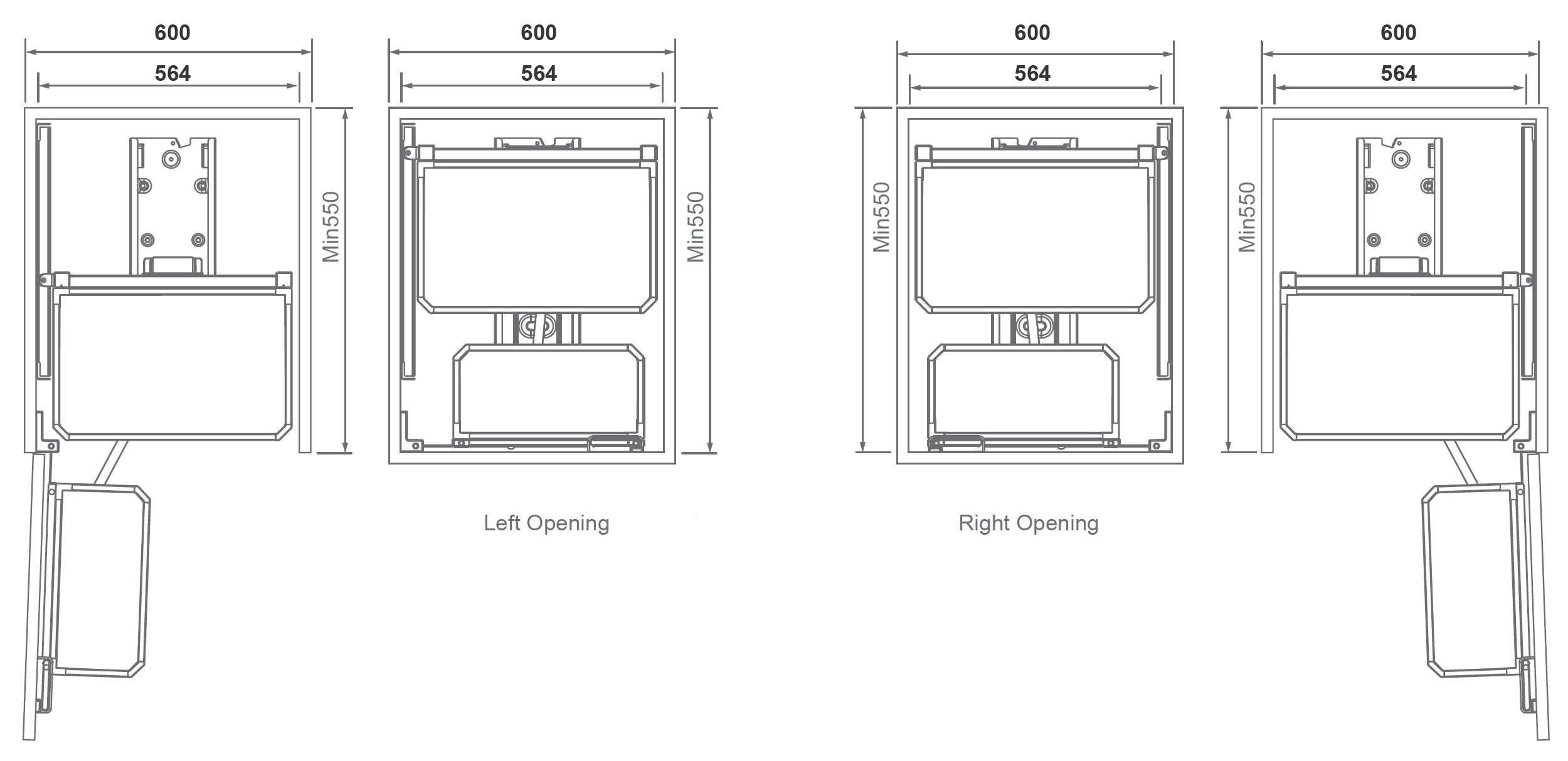 Tủ đồ khô 6 tầng hợp kim nhôm màu ghi đậm cánh mở 450mm Eurogold EUM6L450G | EKG15645