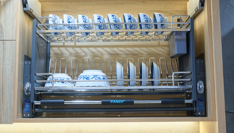 Giá bát đĩa nâng hạ Inox 304 nan Oval 800mm Fandi FAO.800