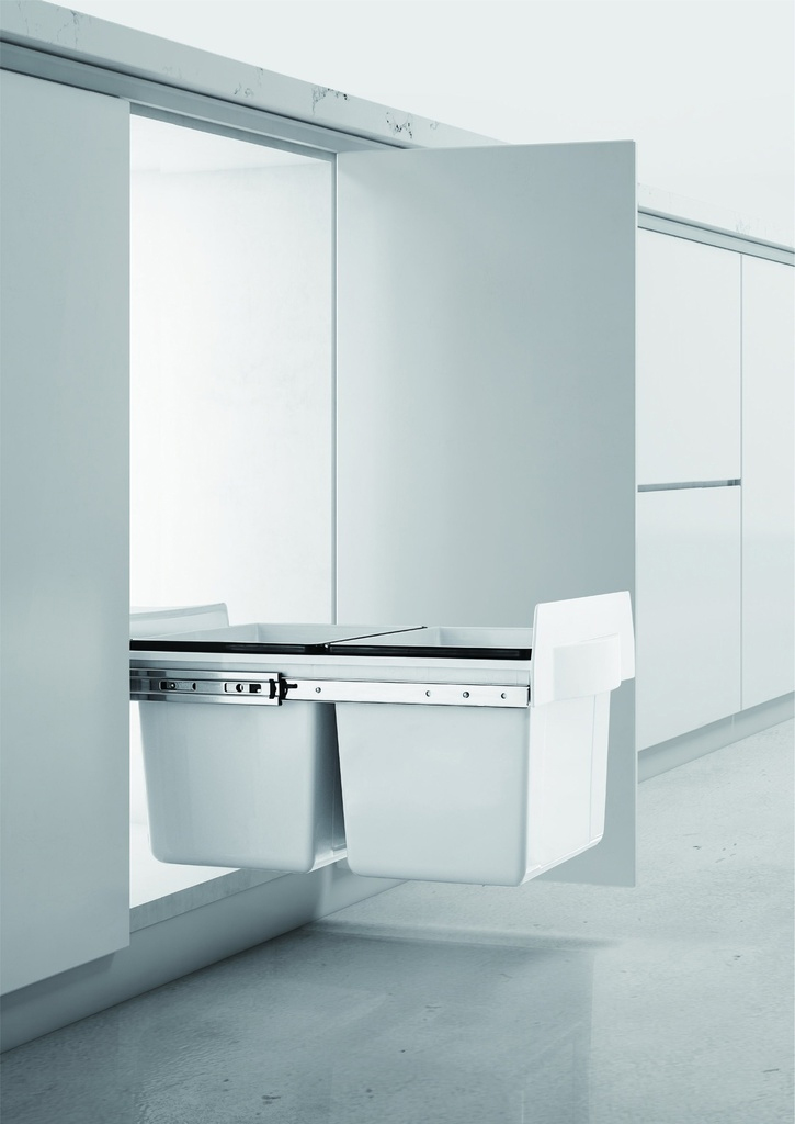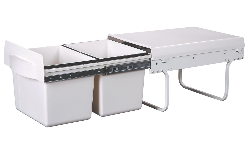 Thùng rác âm tủ 2 ngăn 60L cánh kéo/mở màu xám 450mm Eurogold EA450 | EB450