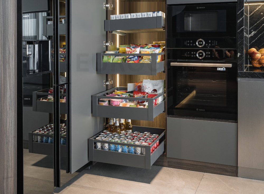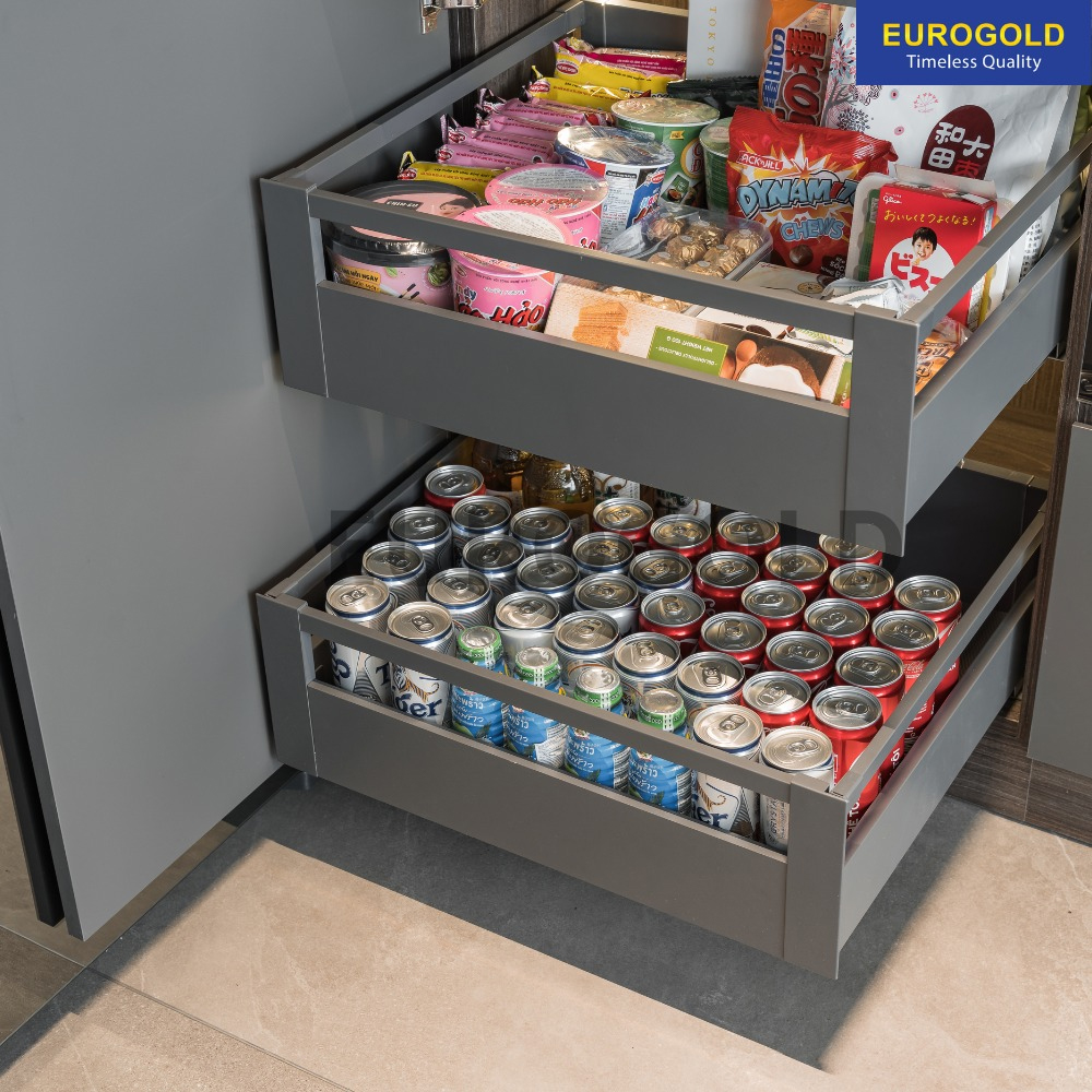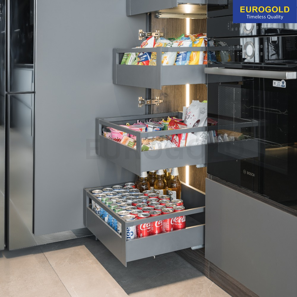 Tủ đồ khô ngăn kéo độc lập 4 tầng màu ghi cánh mở 600-900mm Eurogold EUM23490G