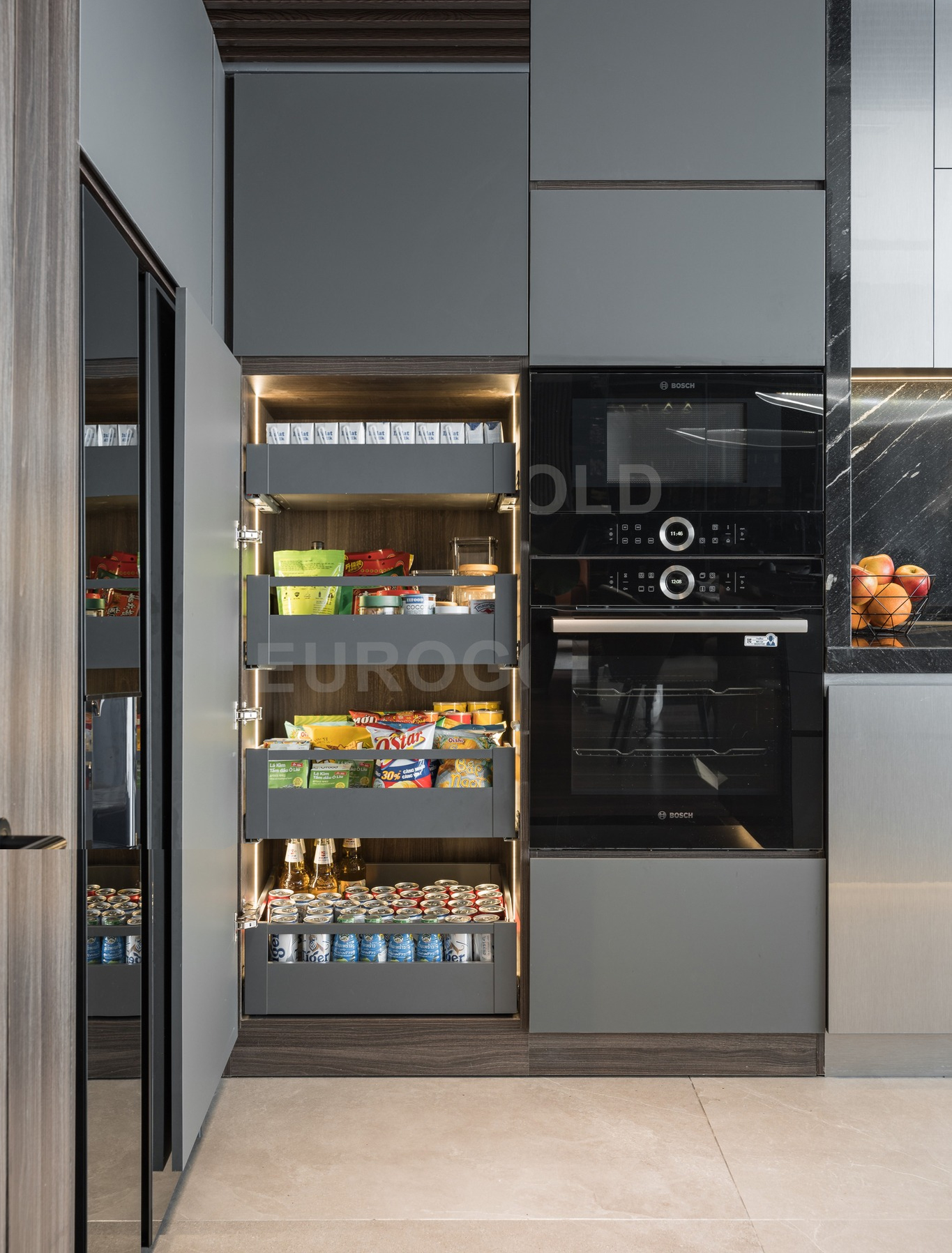 Tủ đồ khô ngăn kéo độc lập 5 tầng màu ghi cánh mở 600-900mm Eurogold EUM23590G