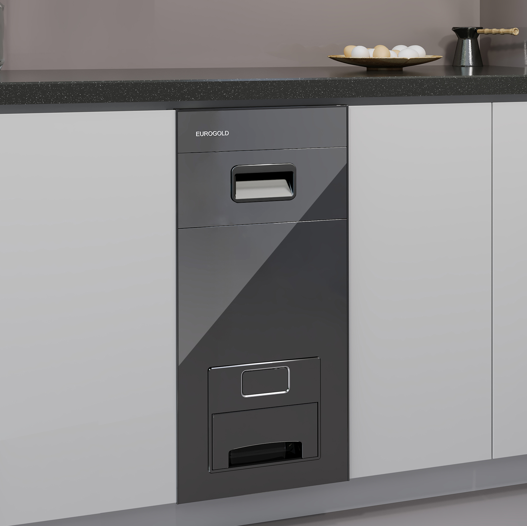 Thùng gạo mặt gương đen 15kg nút nhấn thẳng 300mm Eurogold CB300B | GC300B