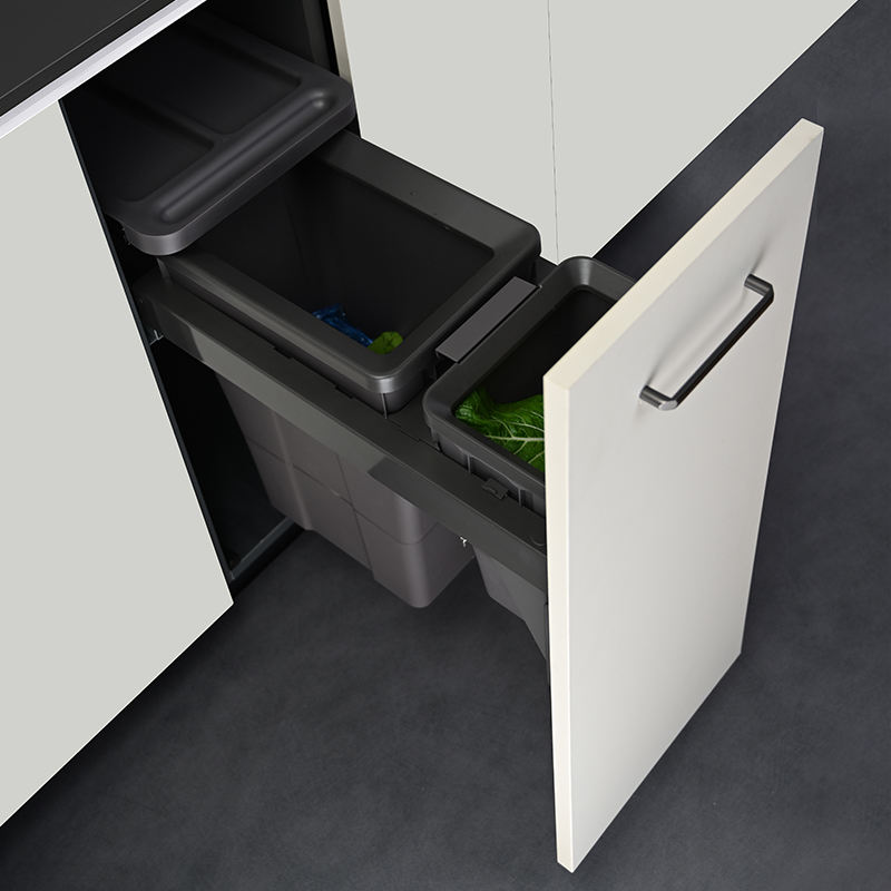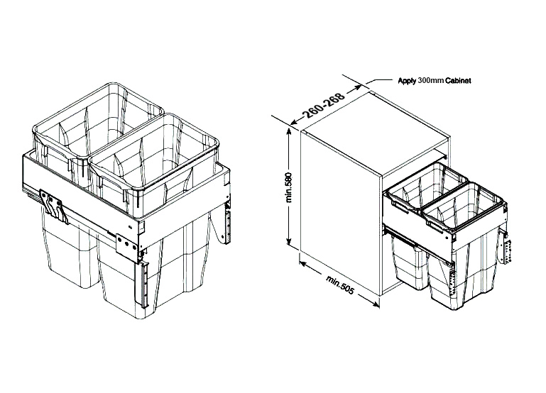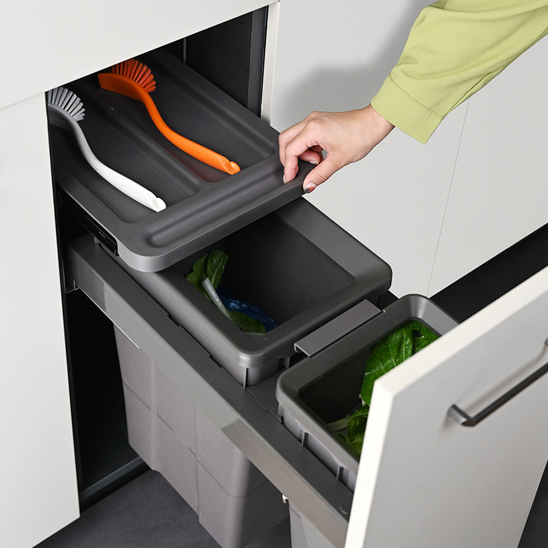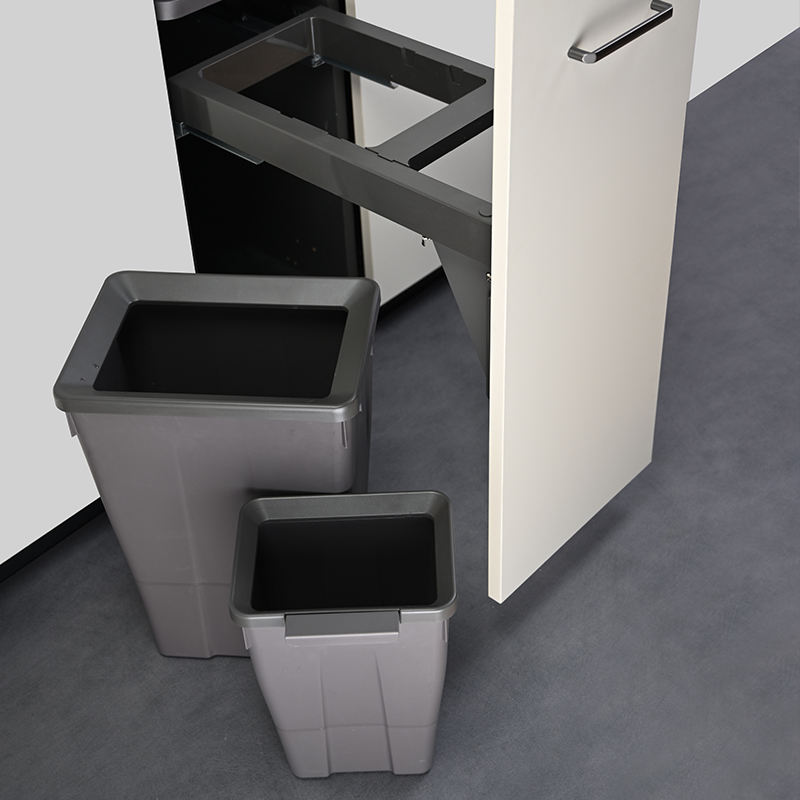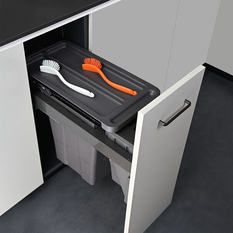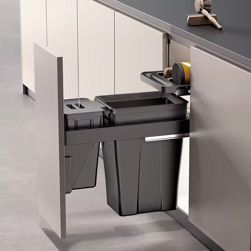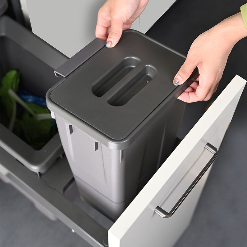 Thùng rác âm tủ 2 ngăn cánh kéo/mở màu xám 300mm GrandX XW.D30