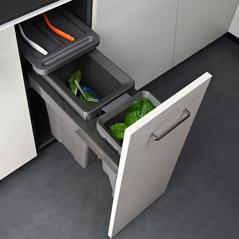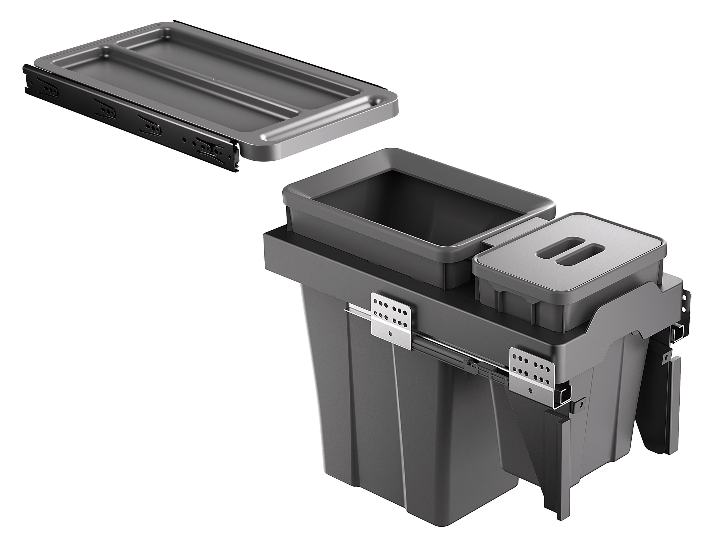 Thùng rác âm tủ 2 ngăn cánh kéo/mở màu xám 400mm GrandX XW.D40