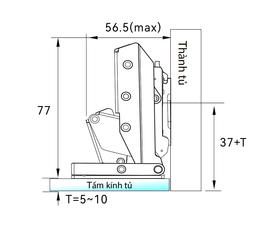 Bản lề thép giảm chấn loại cong toàn phần cho cửa kính GrandX XC.G3