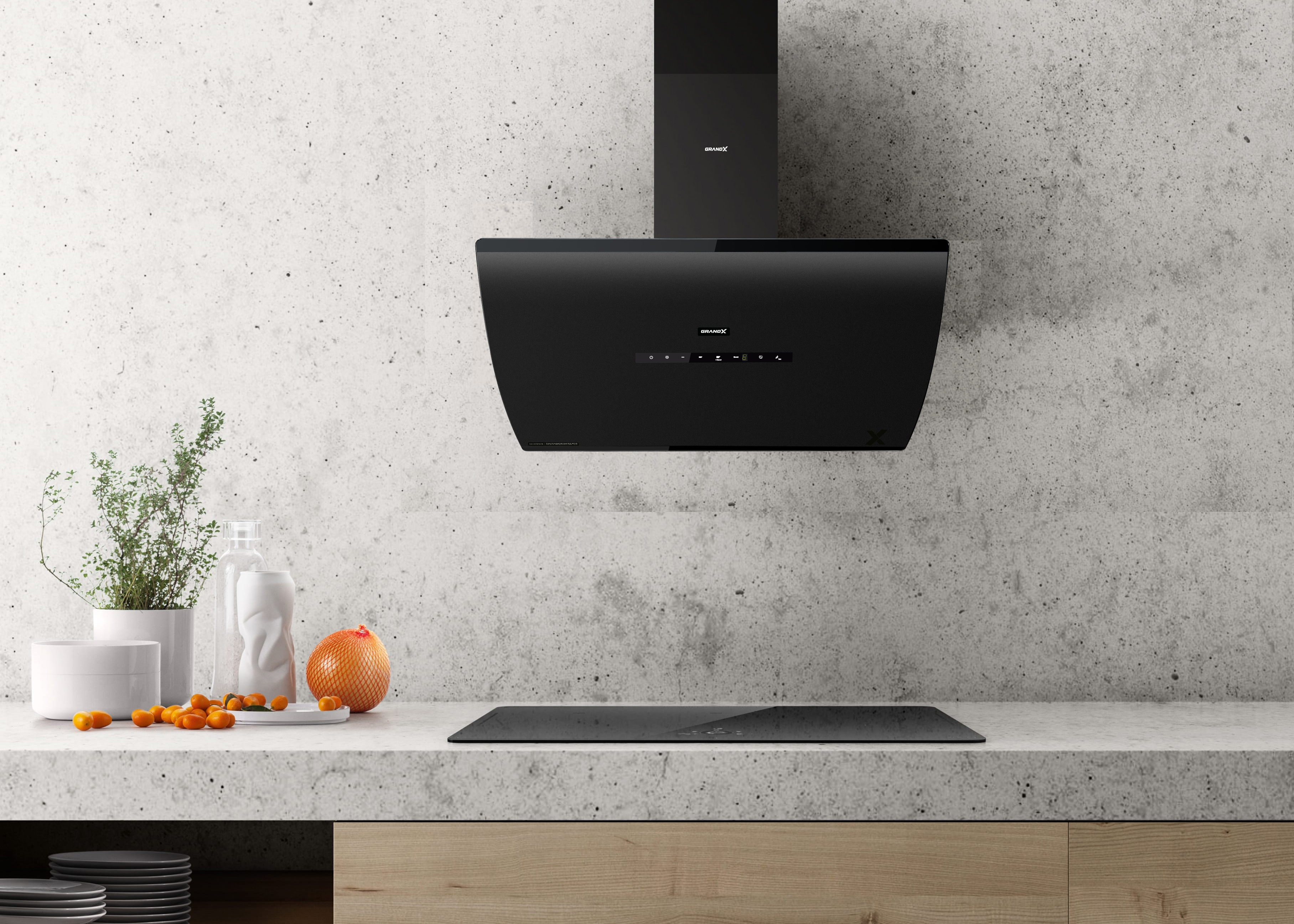 Máy hút mùi áp tường kính vát mở cửa tự động 90cm GrandX GX H90F87B