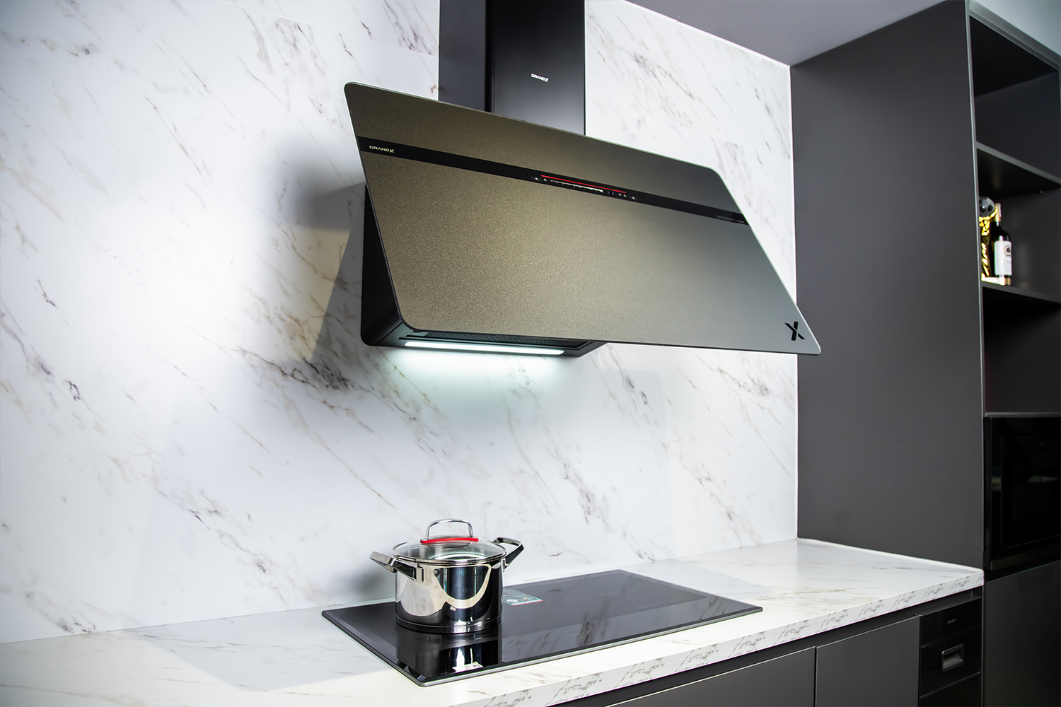Máy hút mùi áp tường kính vát màu xám 90cm GrandX GX H90S86G