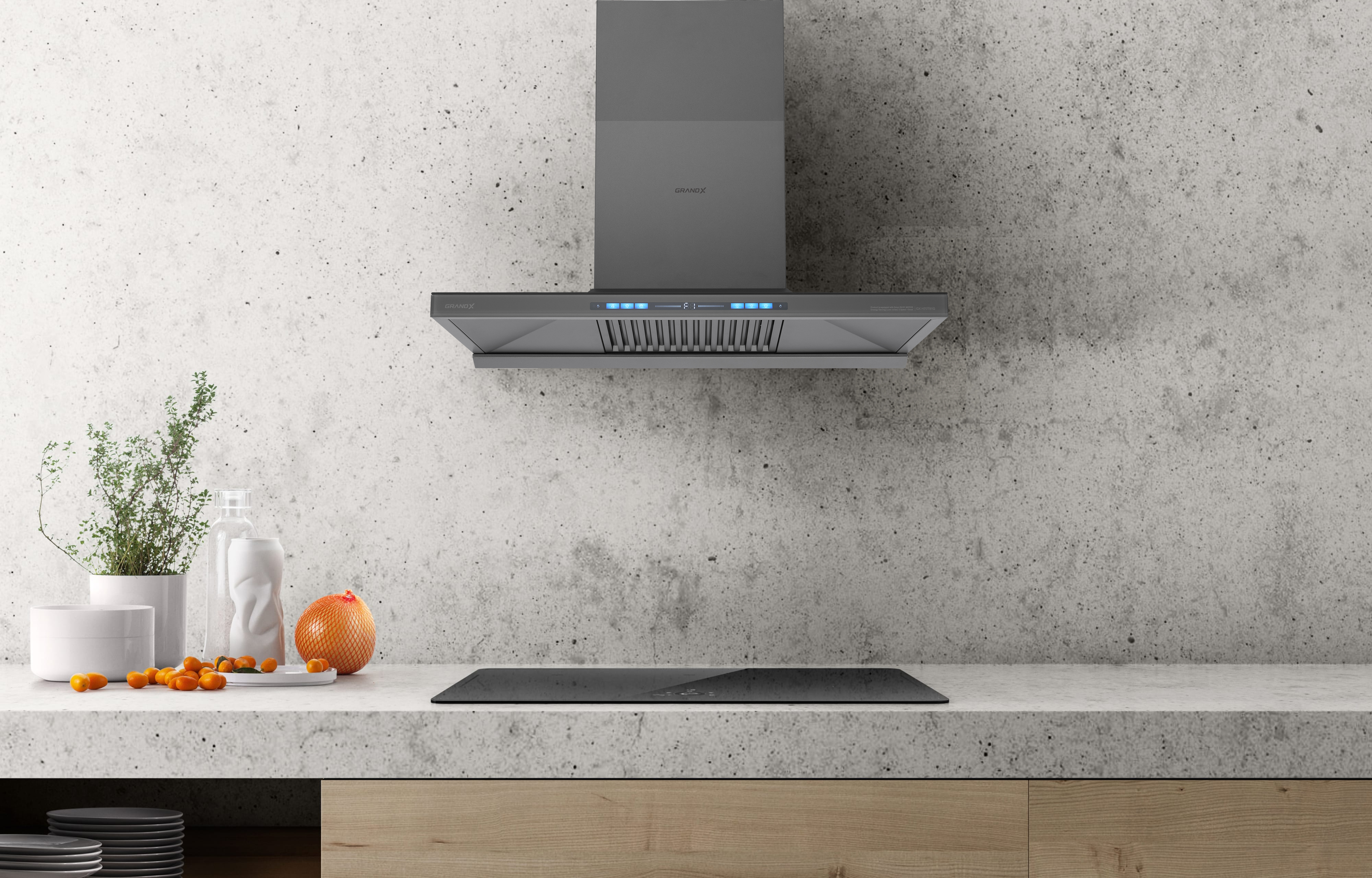 Máy hút mùi áp tường chữ T màu xám Titan 90cm GrandX GX H90T81G