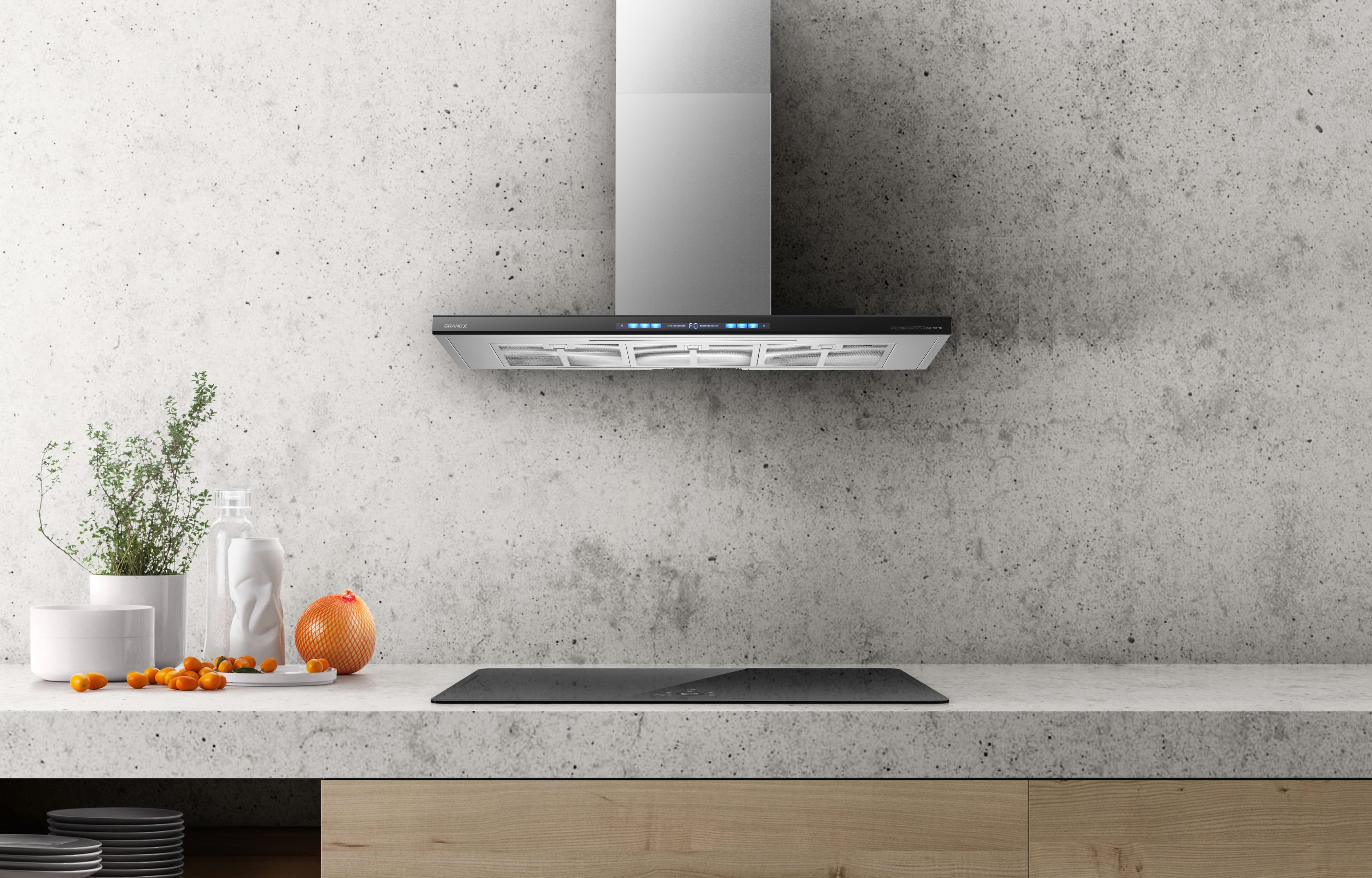 Máy hút mùi áp tường chữ T Inox kính đen 90cm GrandX GX H90T78B