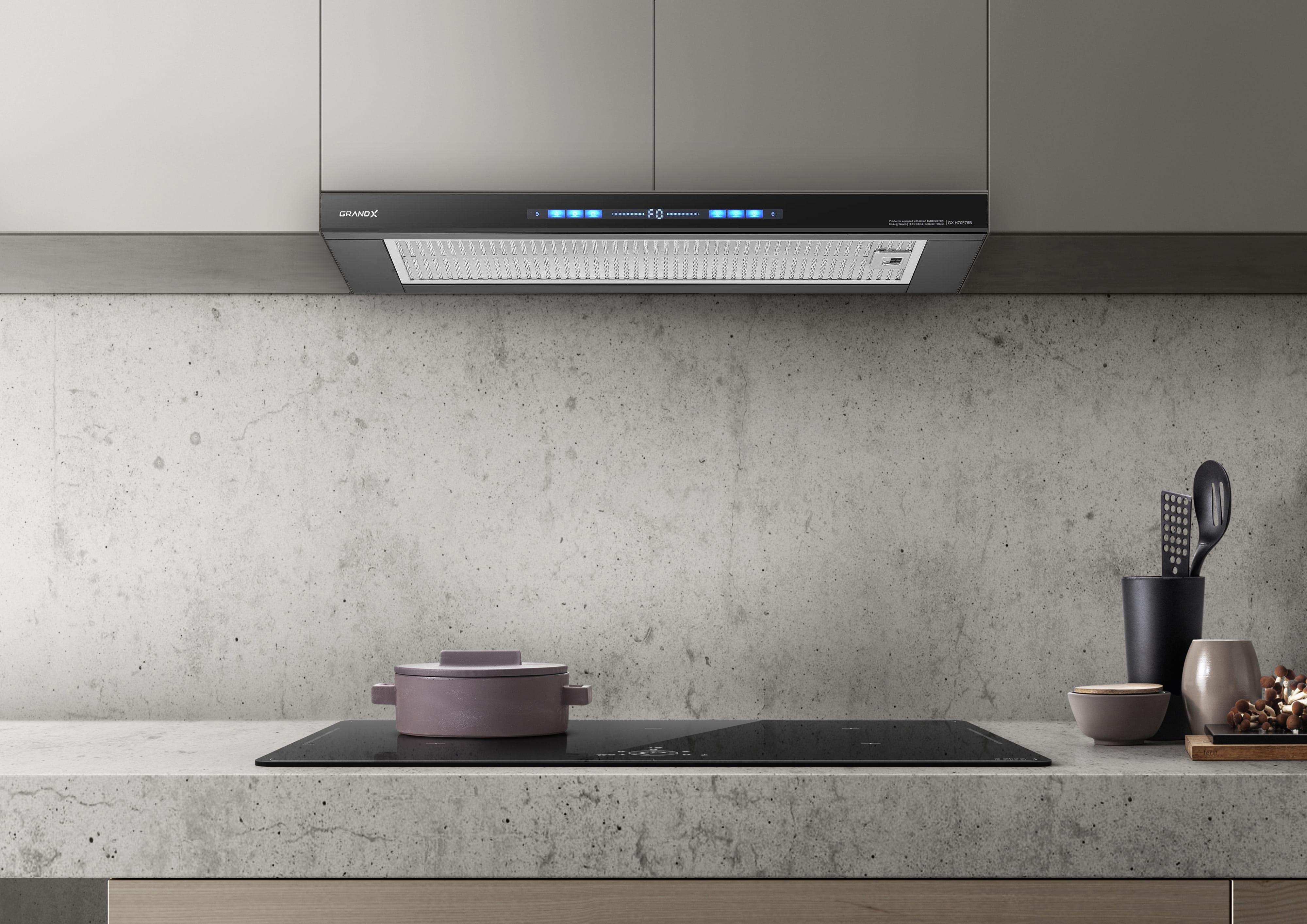 Máy hút mùi âm tủ màu xám mở cửa tự động 70cm GrandX GX H70F75G