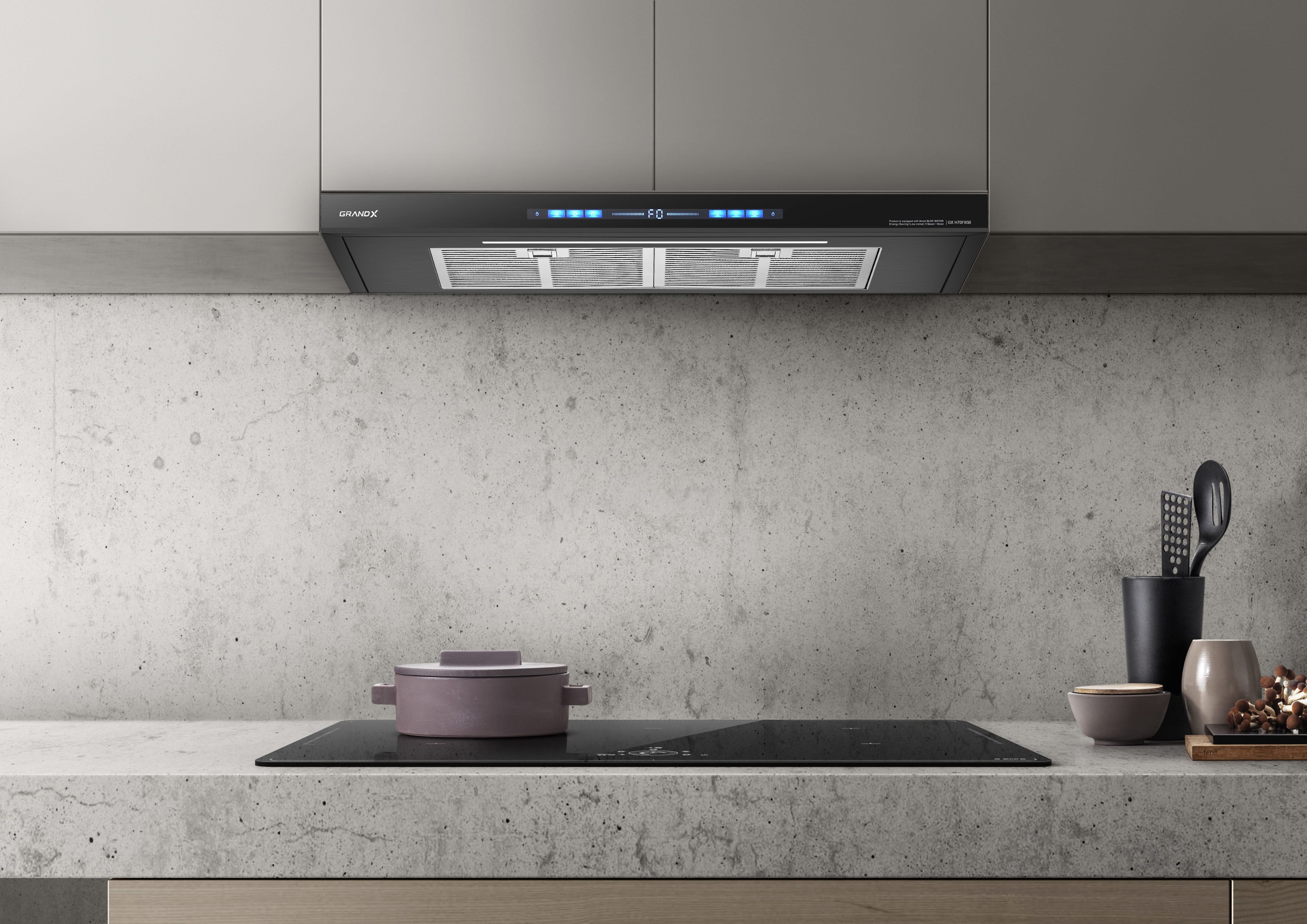 Máy hút mùi âm tủ màu xám mở cửa tự động 70cm GrandX GX H70F75G