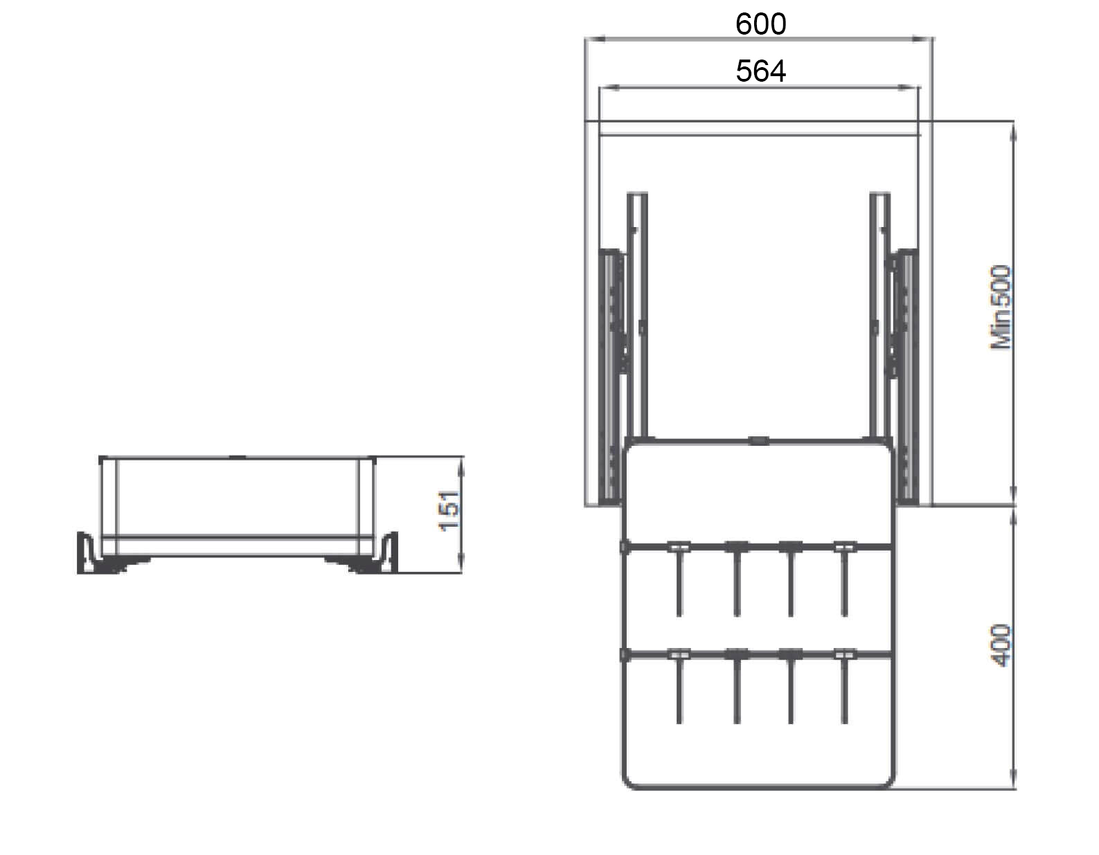 Ngăn kéo thành thấp kết hợp khay chia nhôm hàng không AA 600mm Garis GT01.6GS