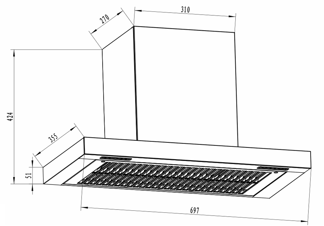 Máy hút mùi áp tường chữ T màu đen 70cm Chefs EH-R908E3T